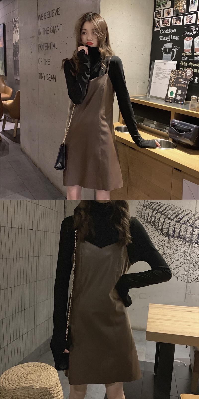 オータムAラインハイウェストウェストレザースカート 秋物 YY-ファッション16859318892