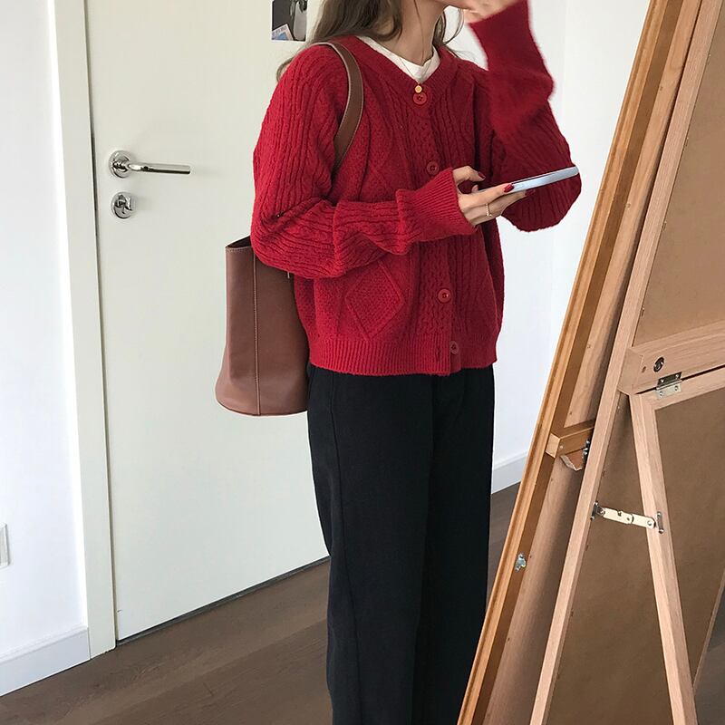 ウィンターセーター カーディガンショートジャケット ルーズラウンドネックトップス ロング 冬物 Oネック YY-ファッション68387404371