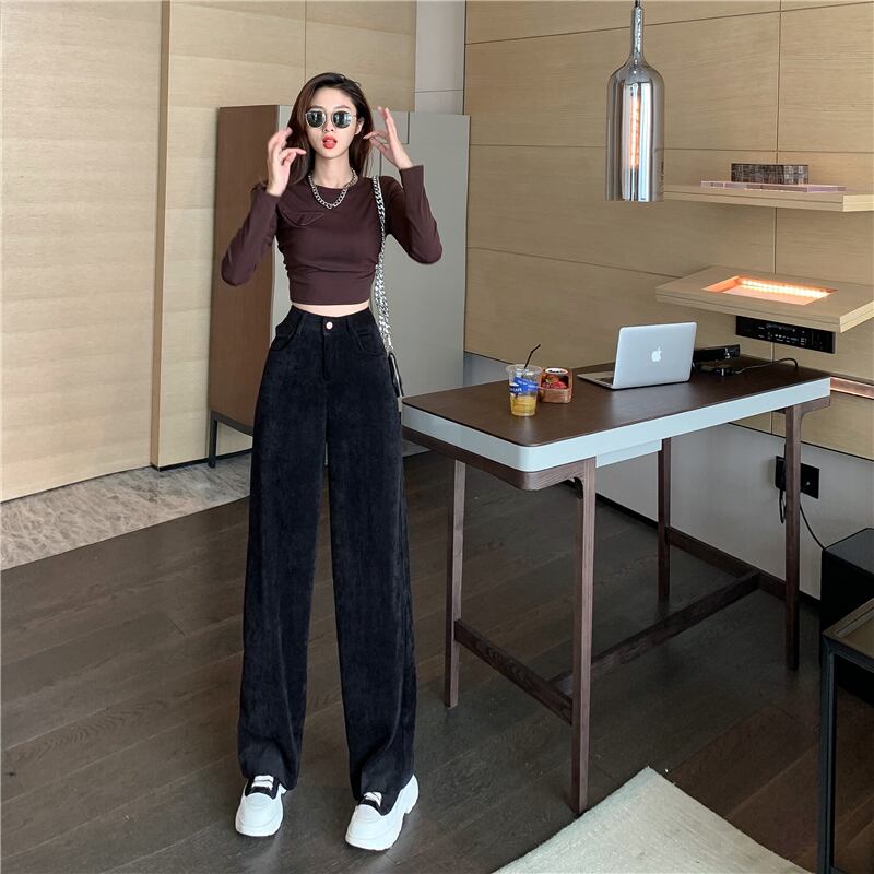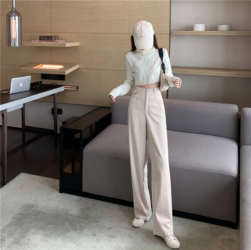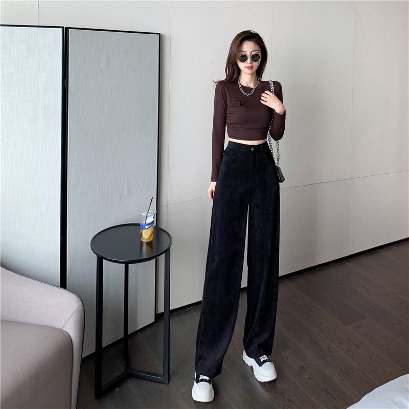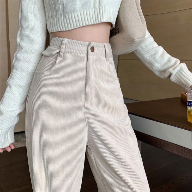 コーデュロイパンツ ルーズオータムウィンターハイウェストウェストカジュアル 秋物 冬物 YY-ファッション86323442635