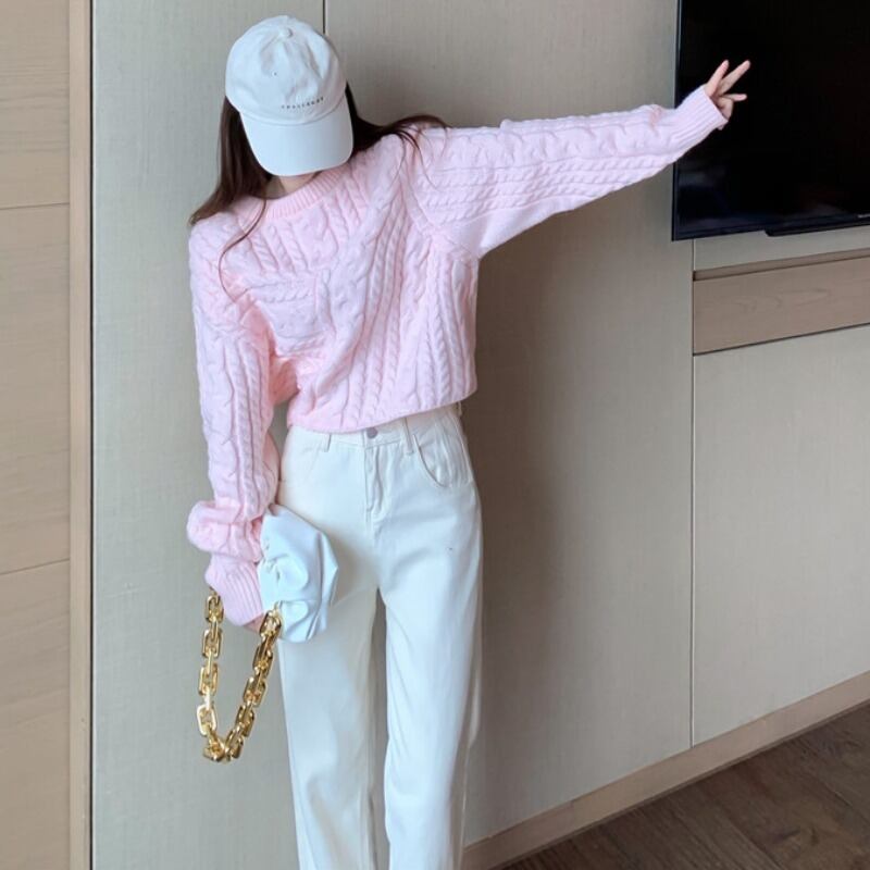 スタイルレディーススタンダードセーター ルーズニットホワイトジーンズ オータムウィンター レトロ 秋物 冬物 YY-ファッション45366703416