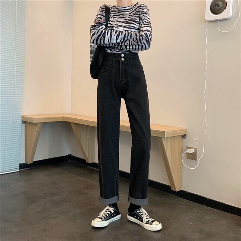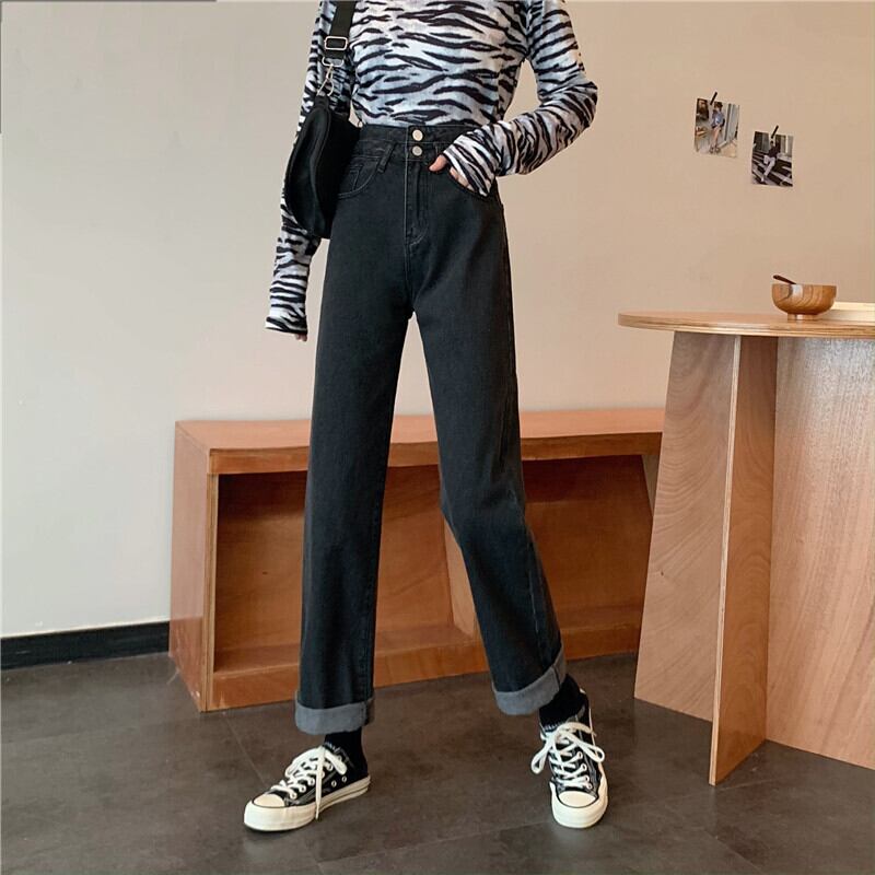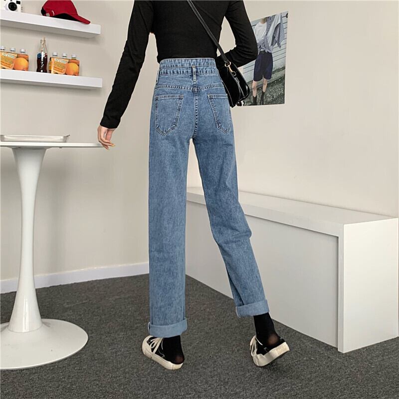 スプリング薄手ハイウェストパンツ ルーズスタンダードボタン レトロ 春物 YY-ファッション9518494723