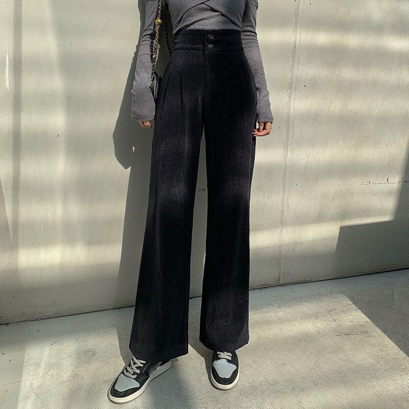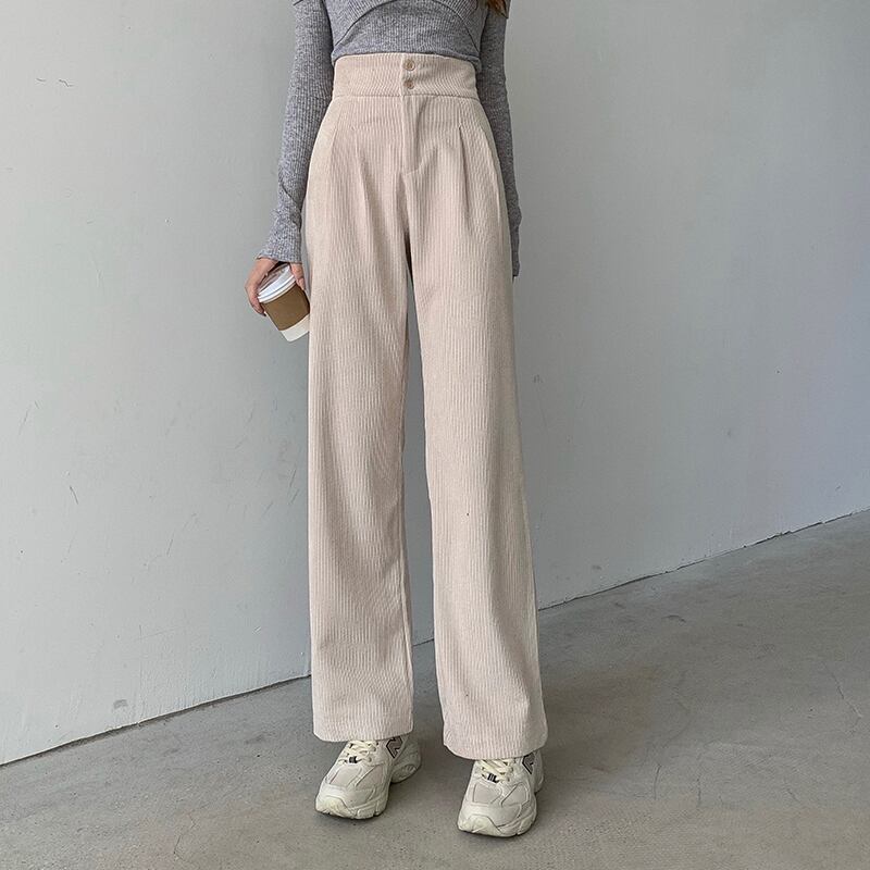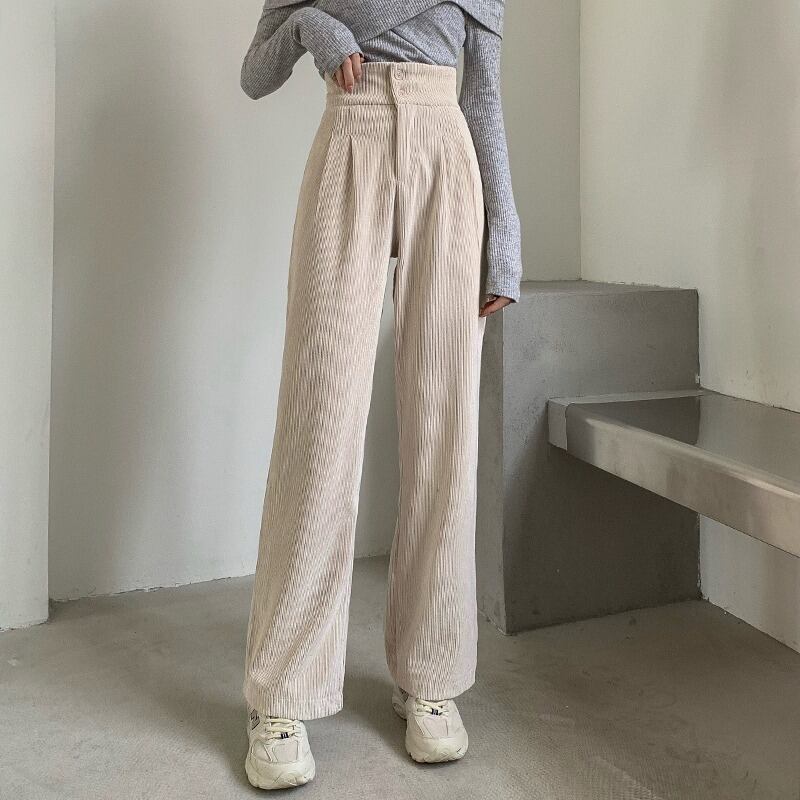 コーデュロイカジュアルパンツ オータムウィンターハイウェストウェストルーズ 秋物 冬物 YY-ファッション96870758721