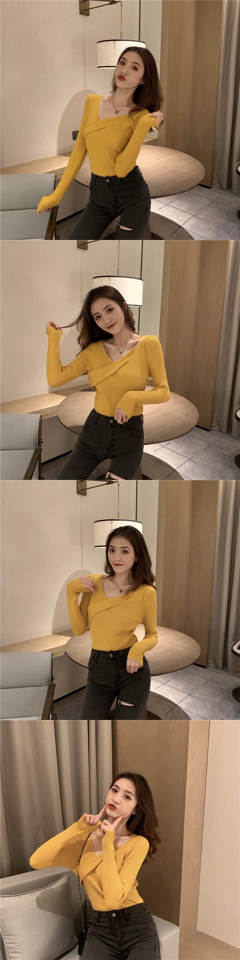 オータムウィンターニットシャツ クロスVネックセーター トップス ロング 秋物 冬物 YY-ファッション4236860500