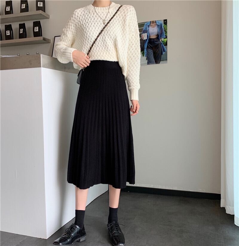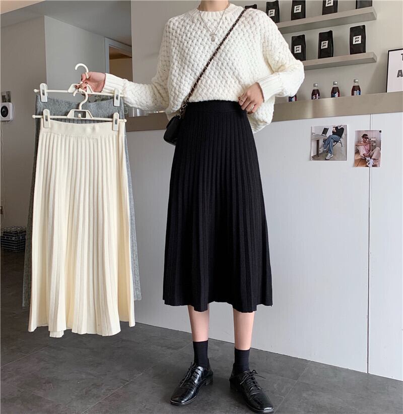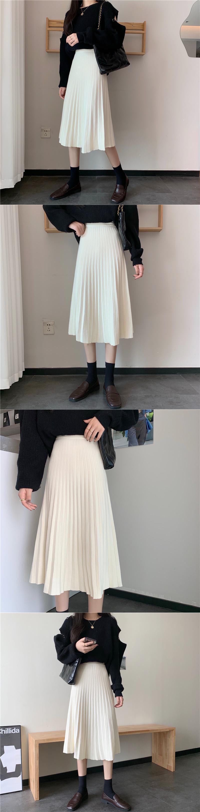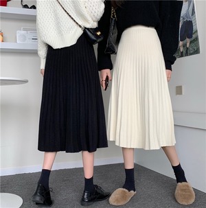 ニットスカート スプリングオータムハイウェストAラインプリーツ 春物 秋物 YY-ファッション69771899807