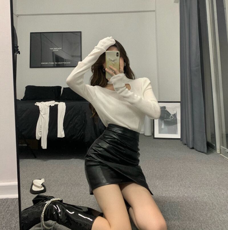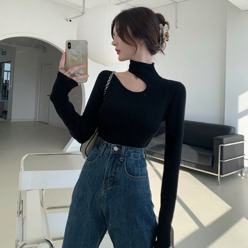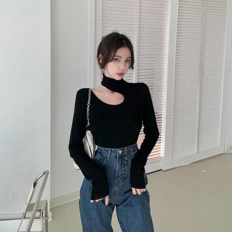 ニットセーター ブラックストラップレスシャツ スプリングトップス 春物 YY-ファッション29024992845