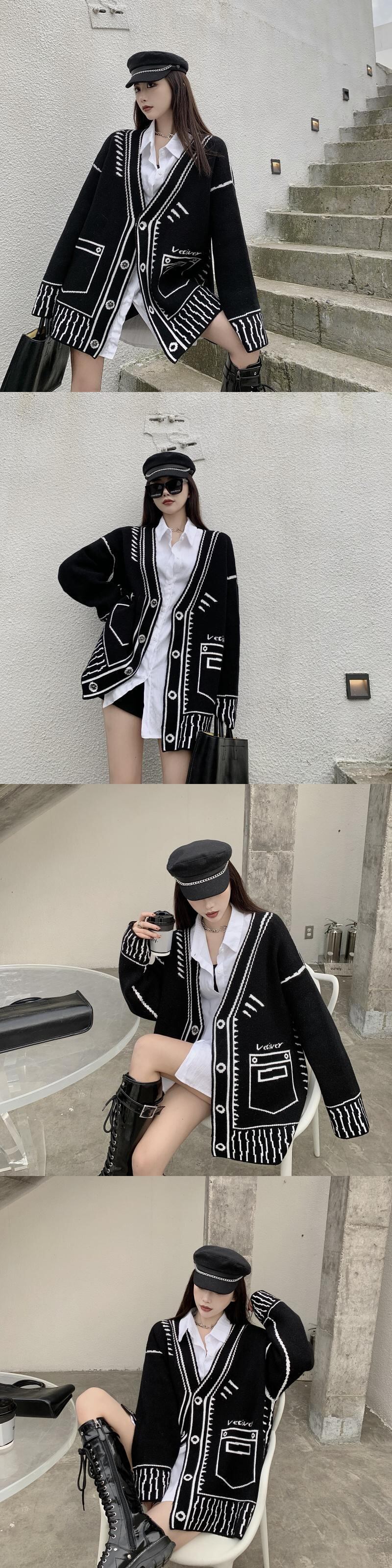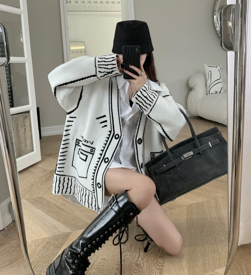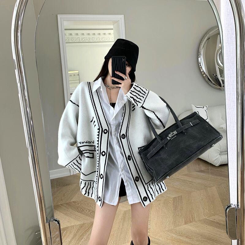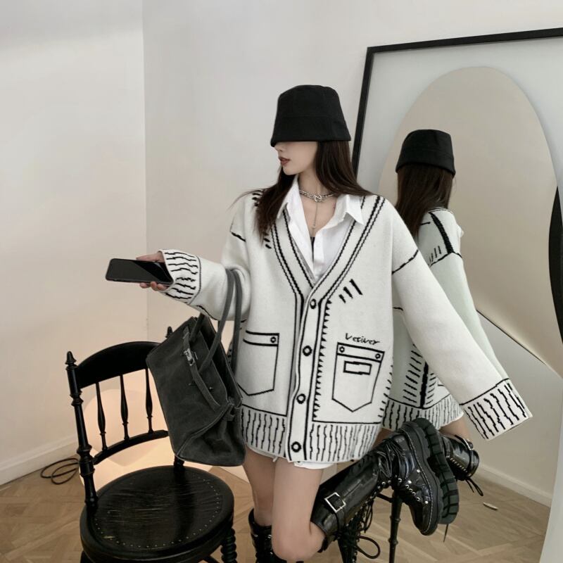 ホワイトセーター ジャケット オータムウィンタースタイルルーズニットカーディガントップス 秋物 冬物 YY-ファッション69202253120