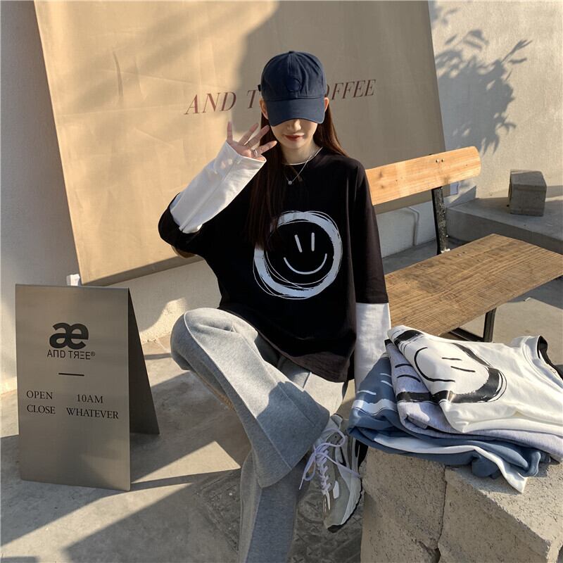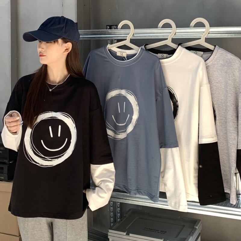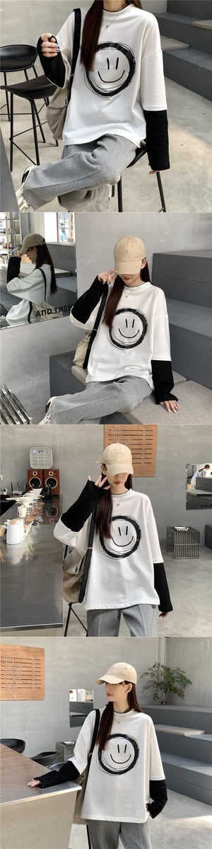 プリントトップス スプリングルーズTシャツ ロング 春物 YY-ファッション80009266135