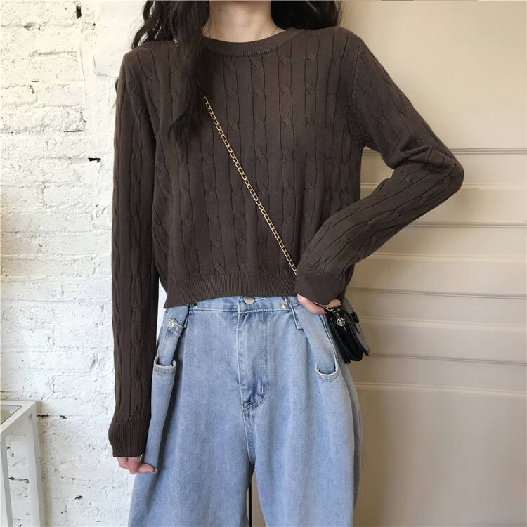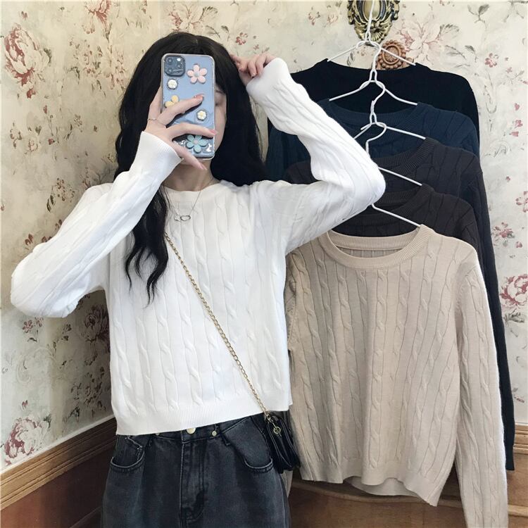 ルーズショートソリッド カラーラウンドネックセーター トップス レディース ロング オータム 秋物 ウィンター 冬物 Oネック ソリッドカラー YY-ファッション41926993041