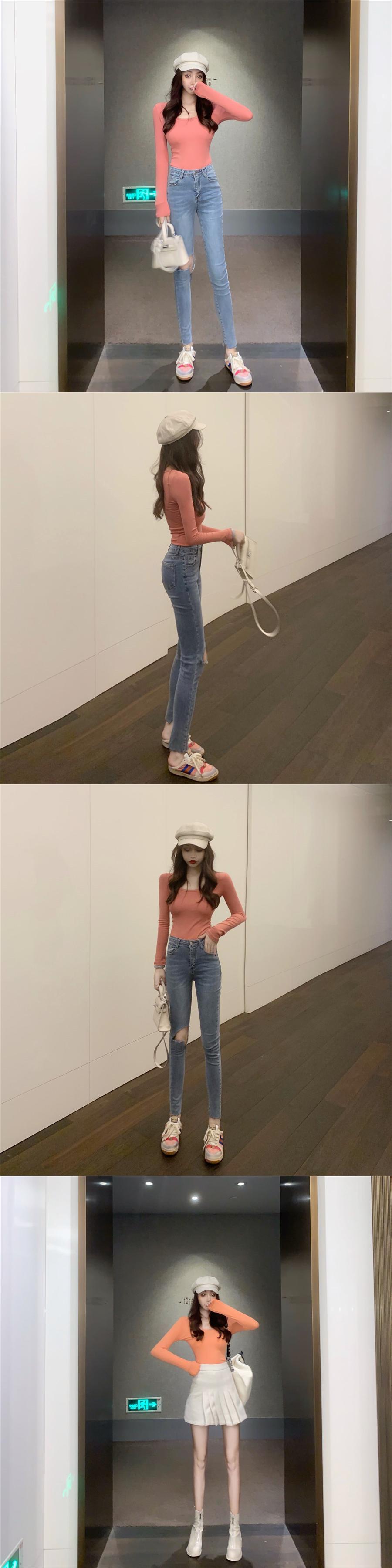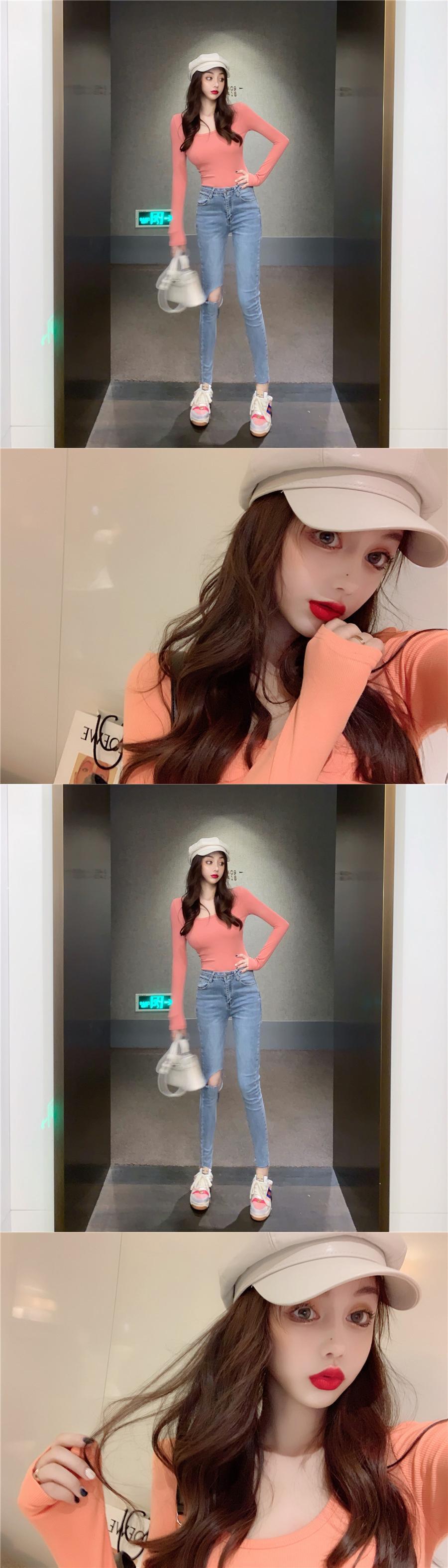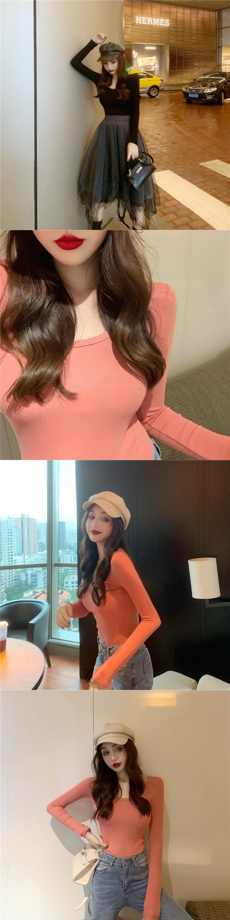 シャツ スリムソリッド カラースプリングトップス Tシャツ ロング 春物 ソリッドカラー YY-ファッション93922609840