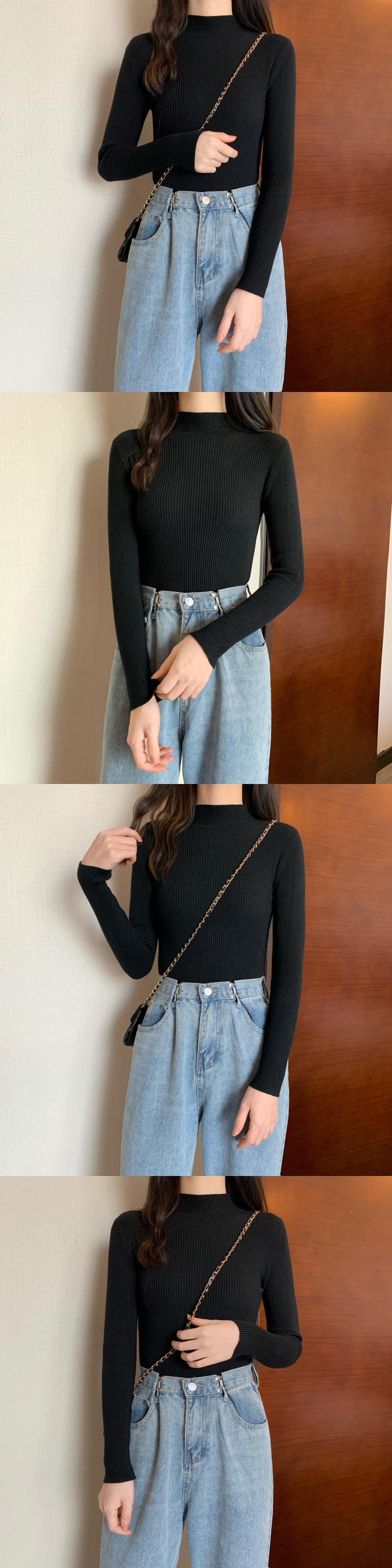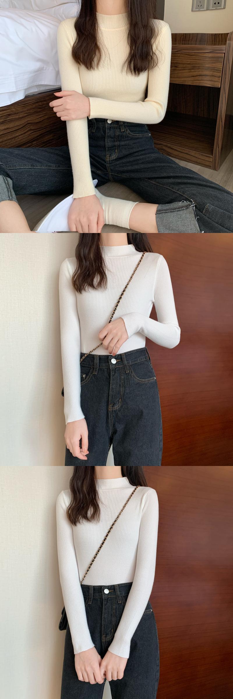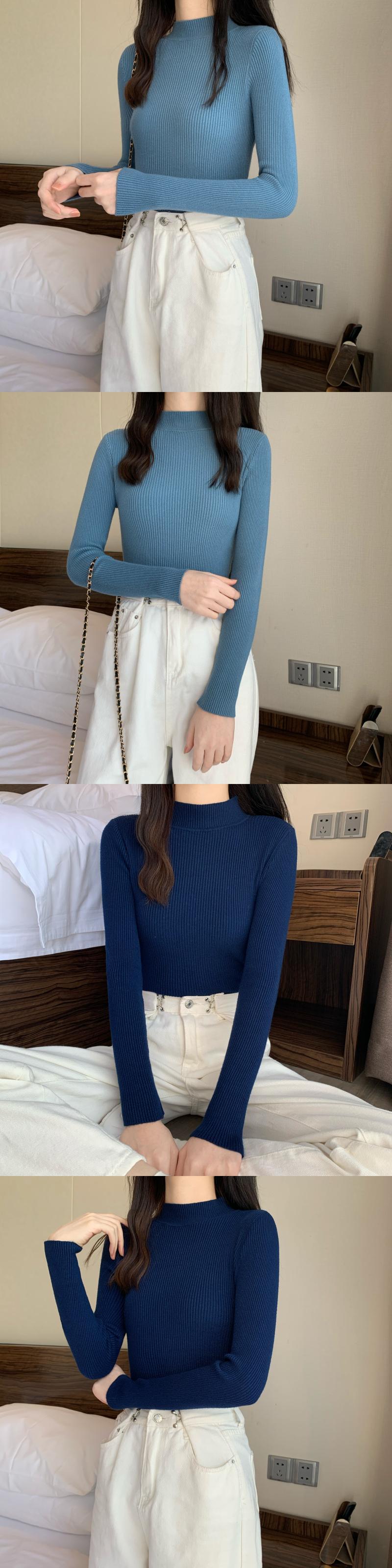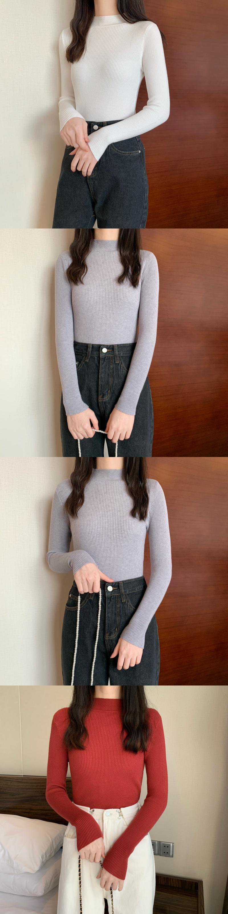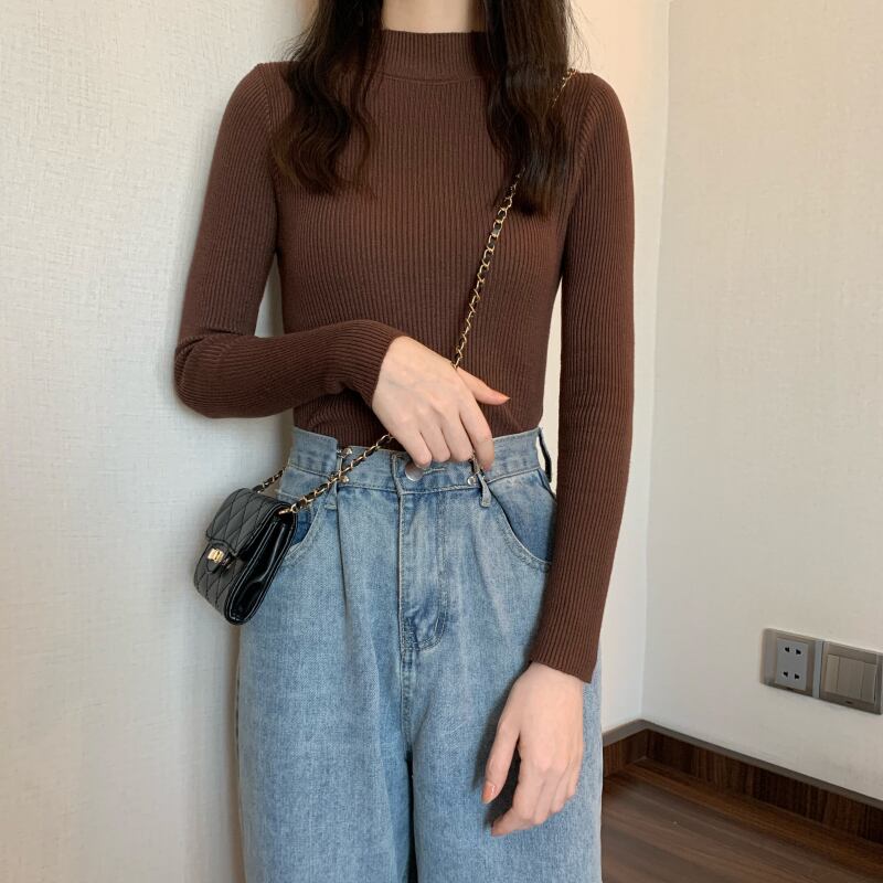 カラーベーシックスリムニットシャツ オータムウィンターソリッド プルオーバー トップス 秋物 冬物 ソリッドカラー YY-ファッション99689317535