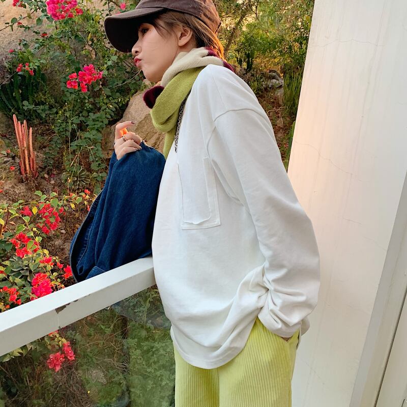 ホワイトスタイルルーズスプリングTシャツ ロング ブラウス 春物 Oネック YY-ファッション57508255844