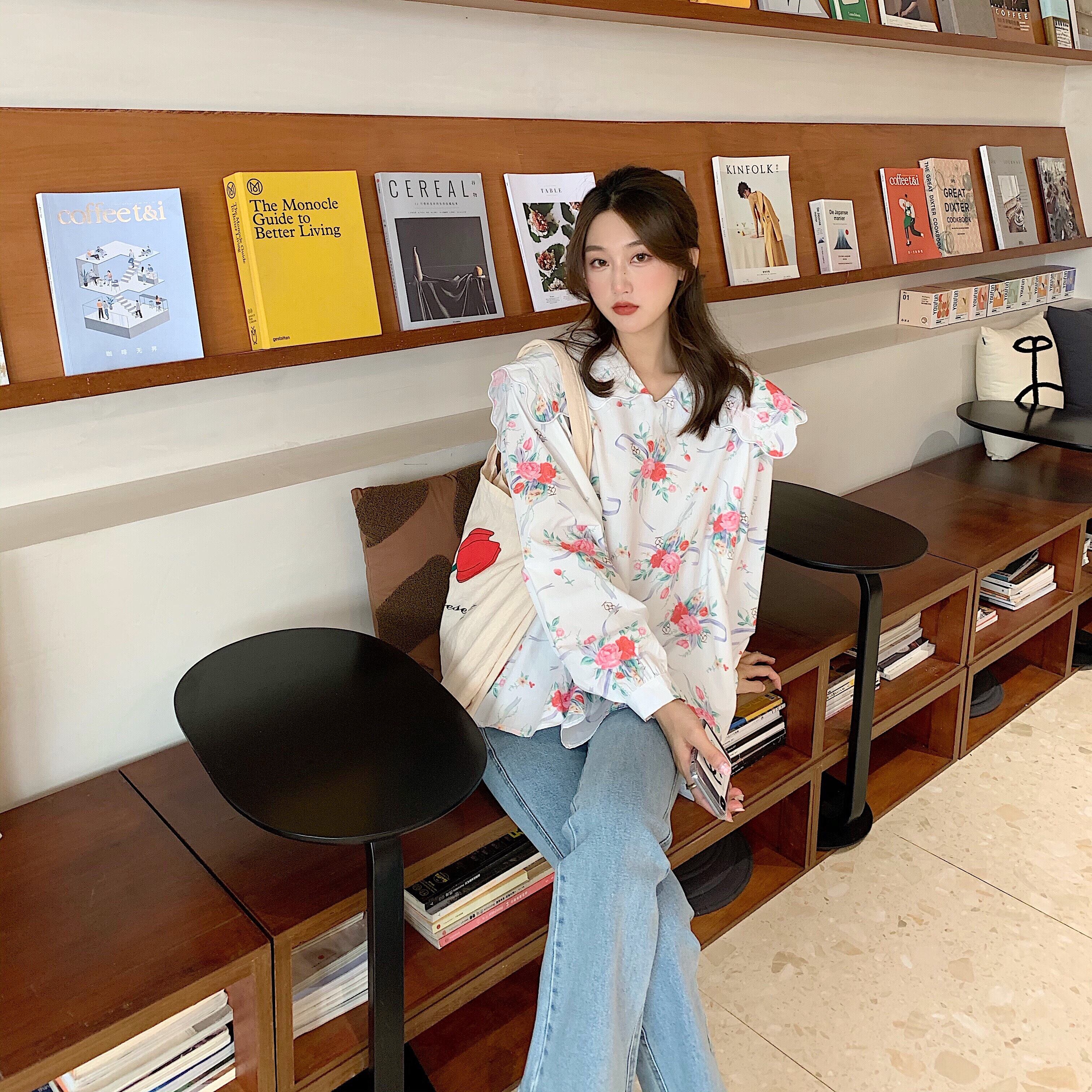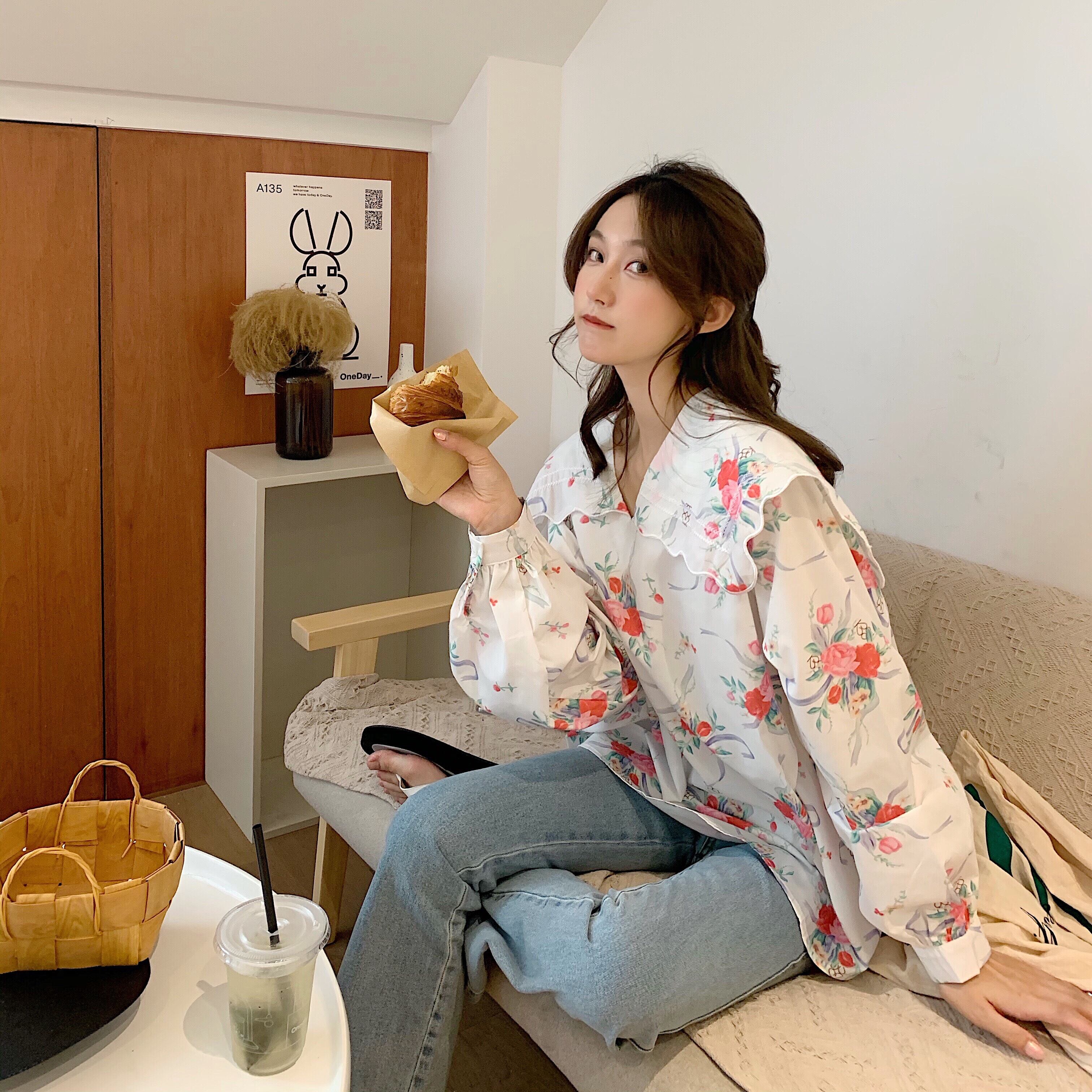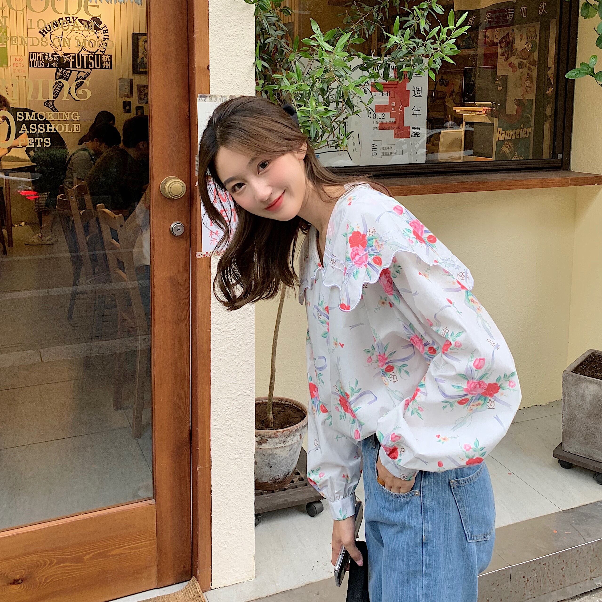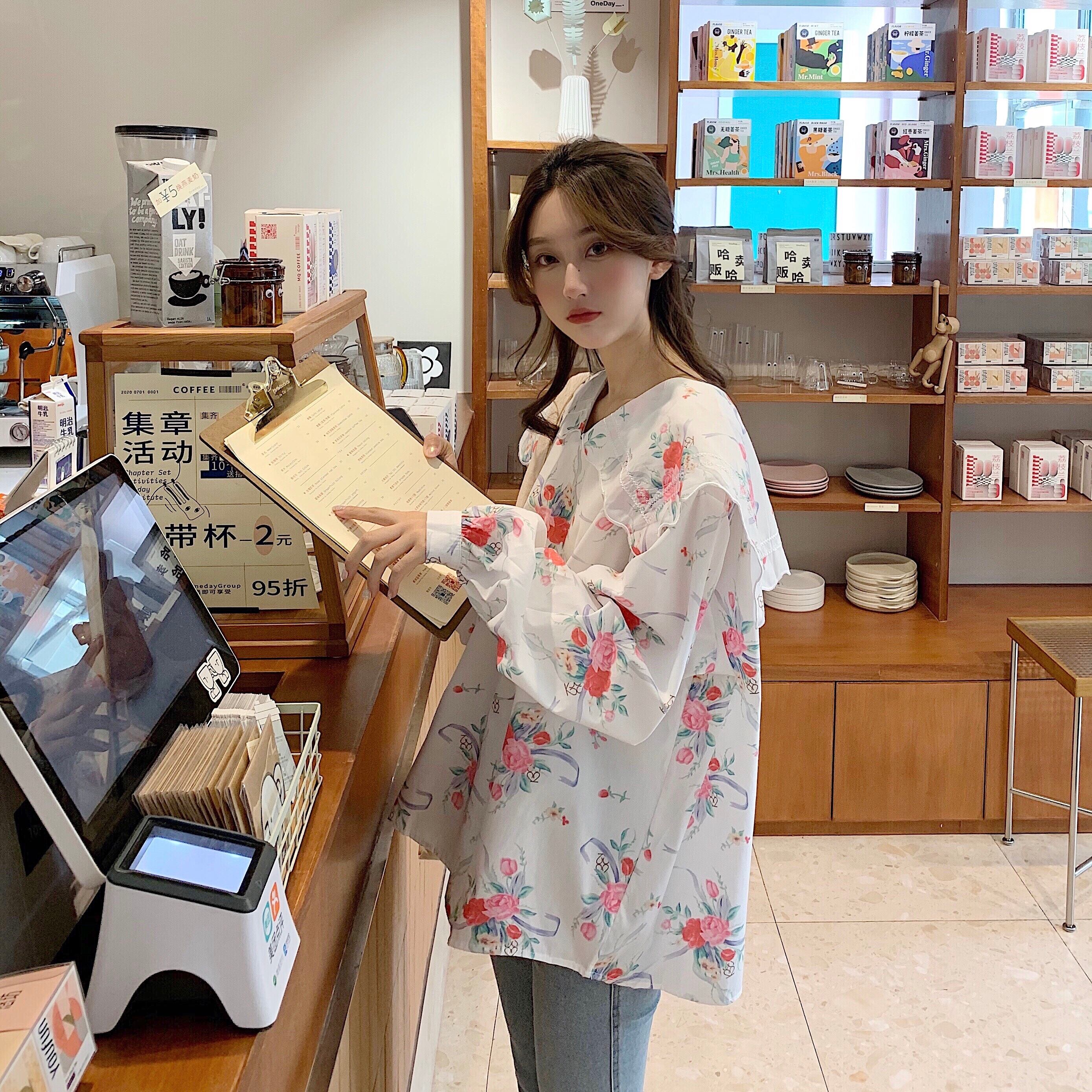 フローラルシャツ レディーススプリングスタンダードルーズ長袖スリーブトップス ロング レトロ 春物 花柄 YY-ファッション83422546410