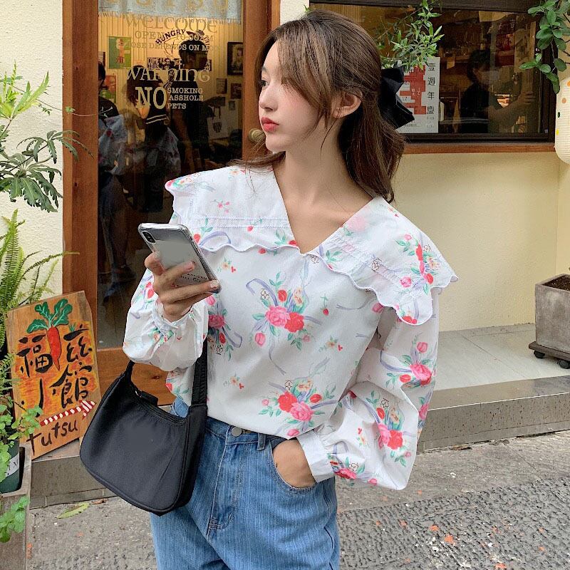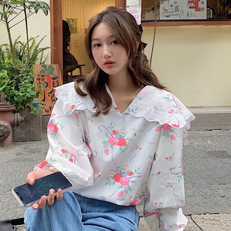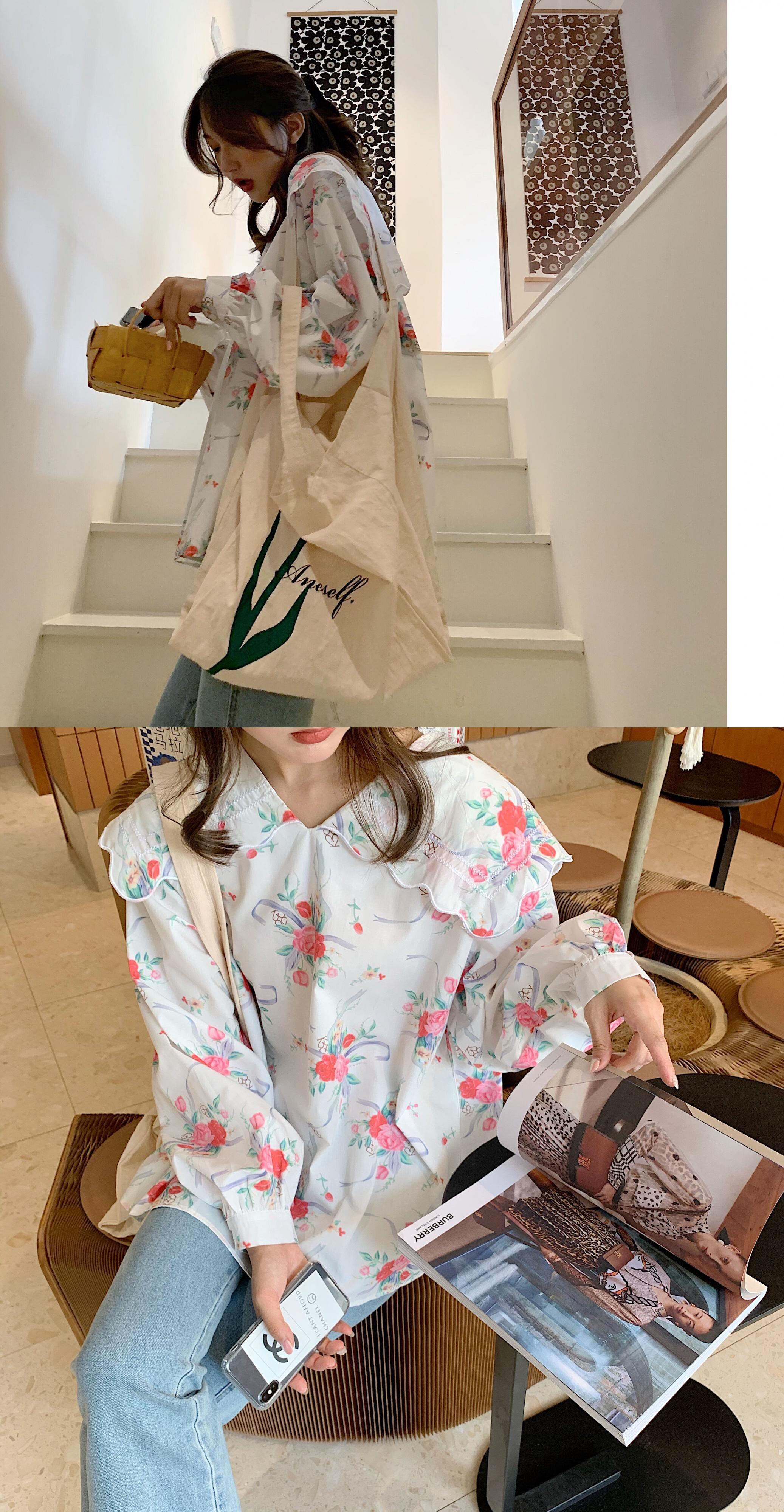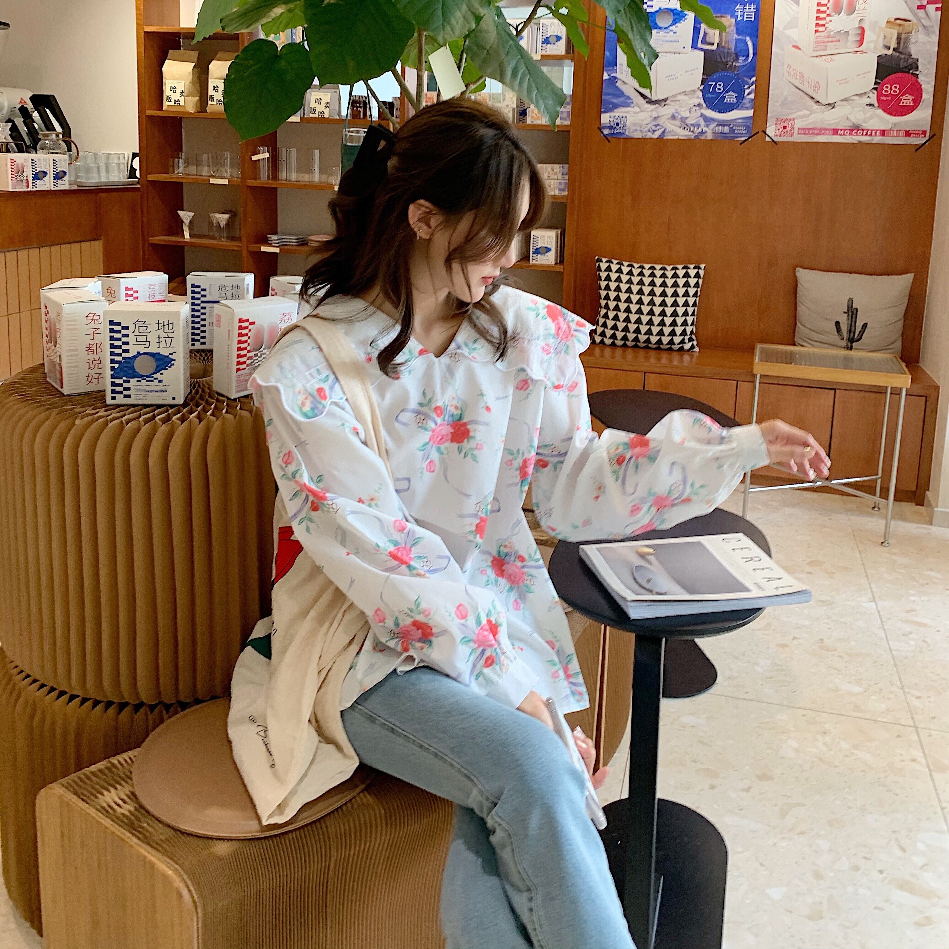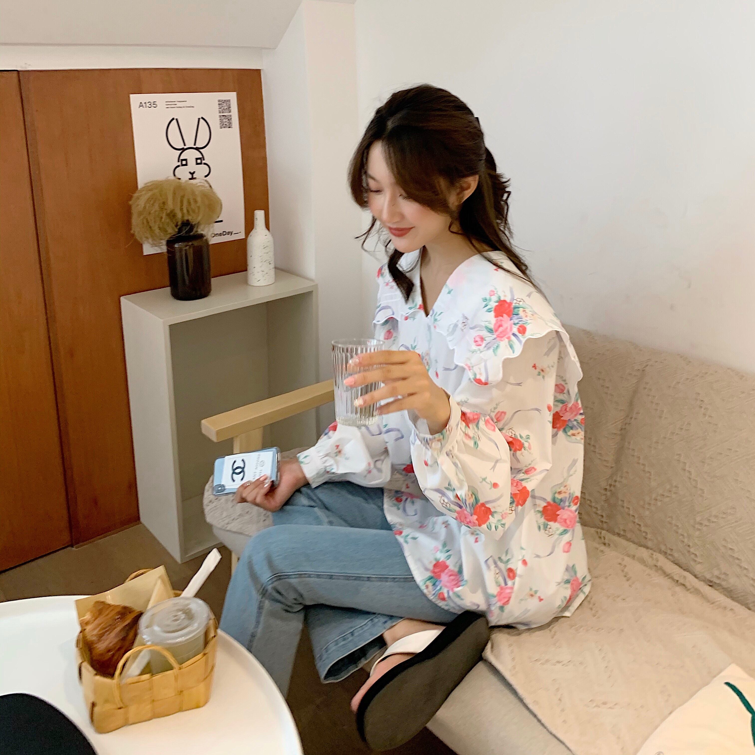 フローラルシャツ レディーススプリングスタンダードルーズ長袖スリーブトップス ロング レトロ 春物 花柄 YY-ファッション83422546410