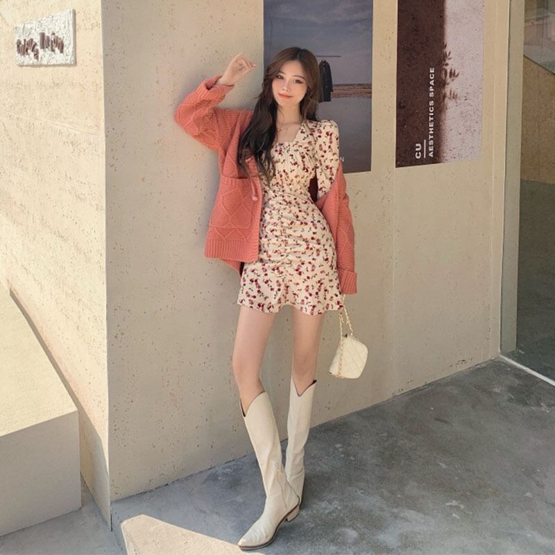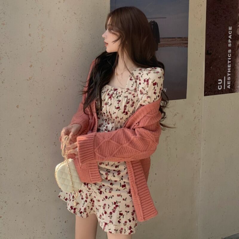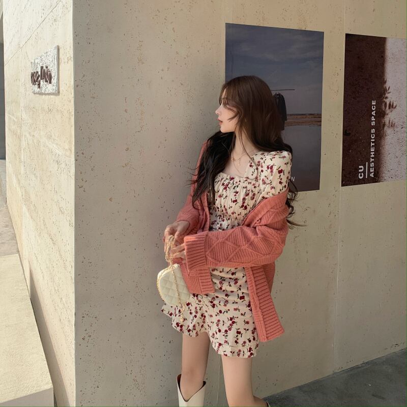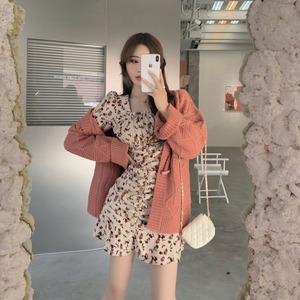 スプリングスタイルスタンダードコーデュロイフローラルプリーツドレス ボタンセーター コート ジャケット レディース レトロ 春物 花柄 YY-ファッション41193259905