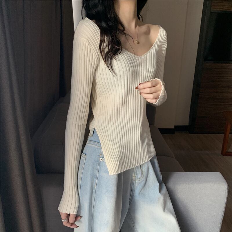 ショートVネックセーター スプリングスタイルシャツ トップス 春物 YY-ファッション26966217835