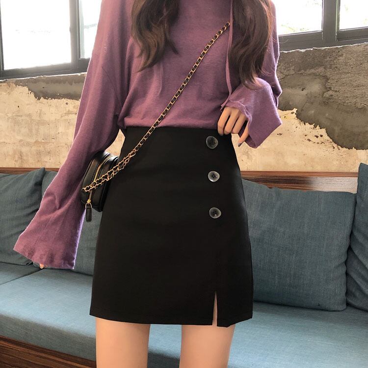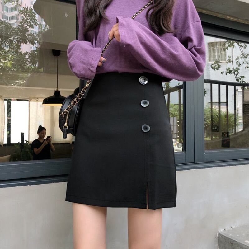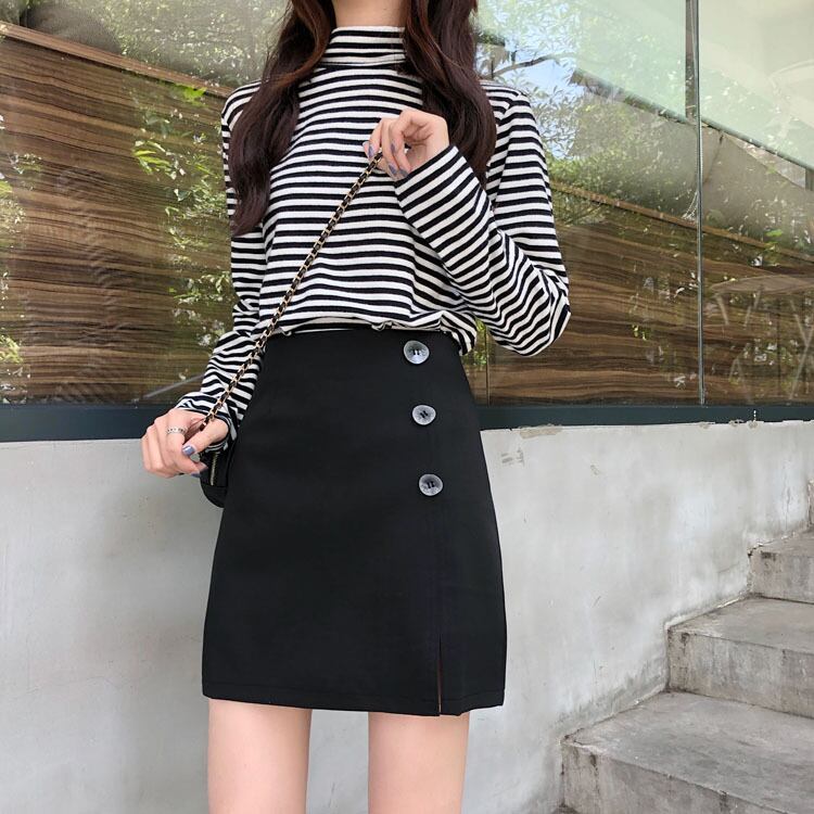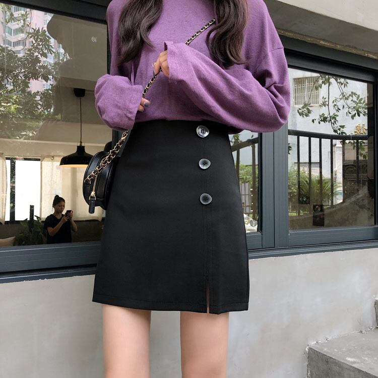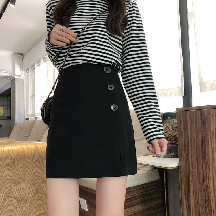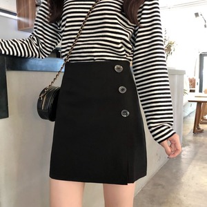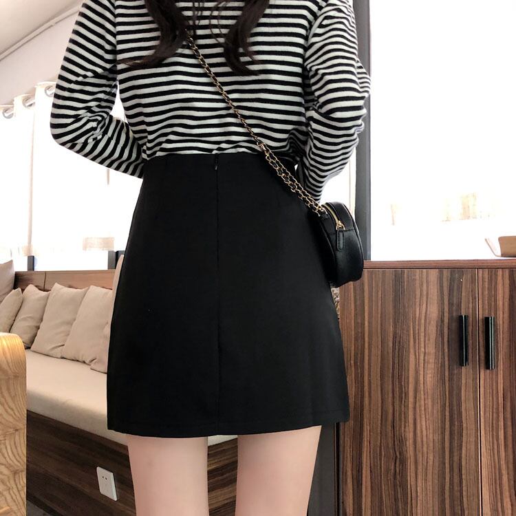 スカート オータムウィンターブラックショートハイウェストウェストAライン 秋物 冬物 YY-ファッション56308141808