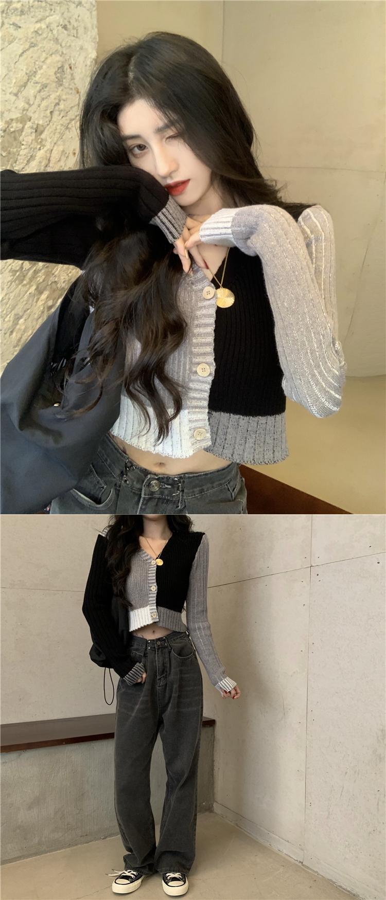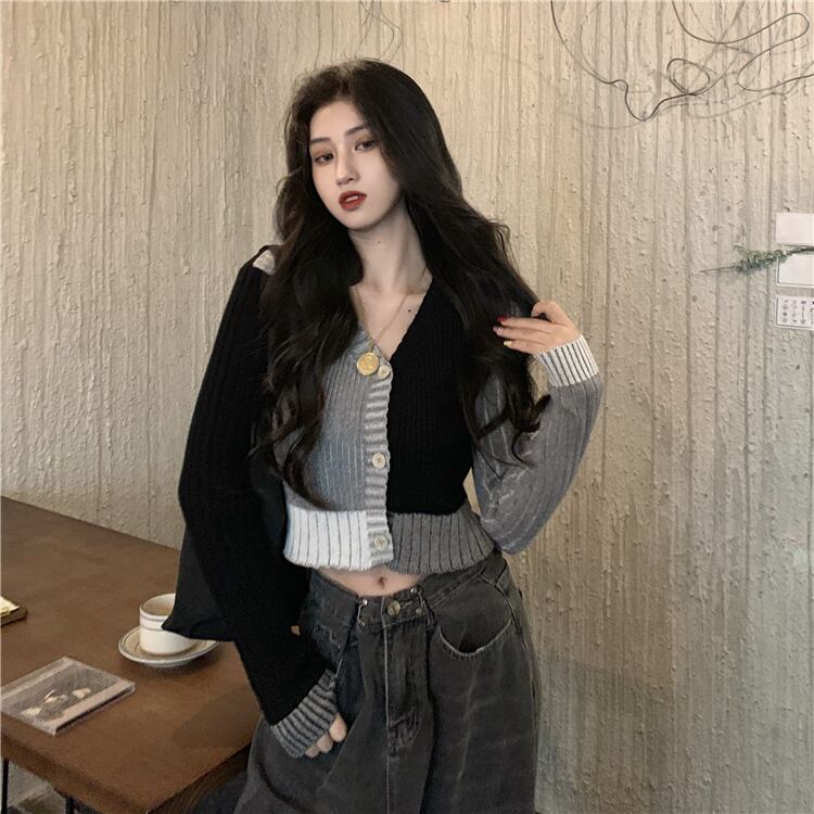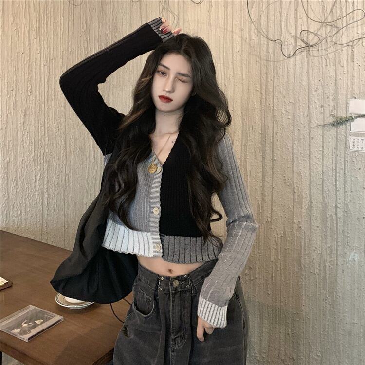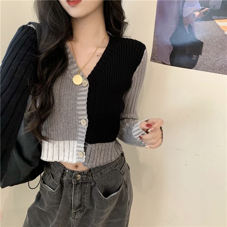Vネックセーター オータムウィンタージャケット カーディガンスタンダードスタイルクロップドトップス ロング レトロ 秋物 冬物 YY-ファッション65701947571