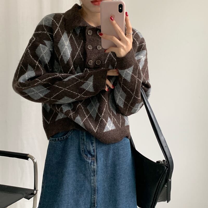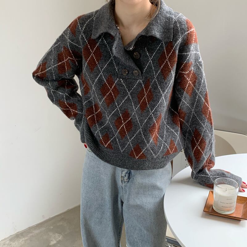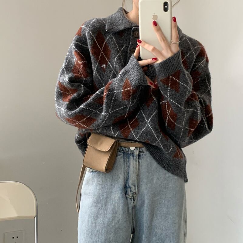 スタンダードカラーセーター トップス レディースオータムウィンタールーズ ロング レトロ 秋物 冬物 YY-ファッション14421924056