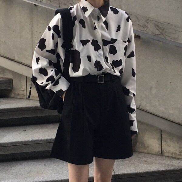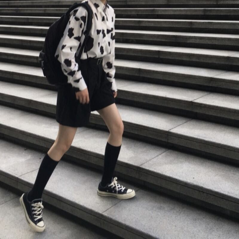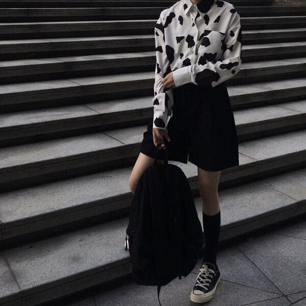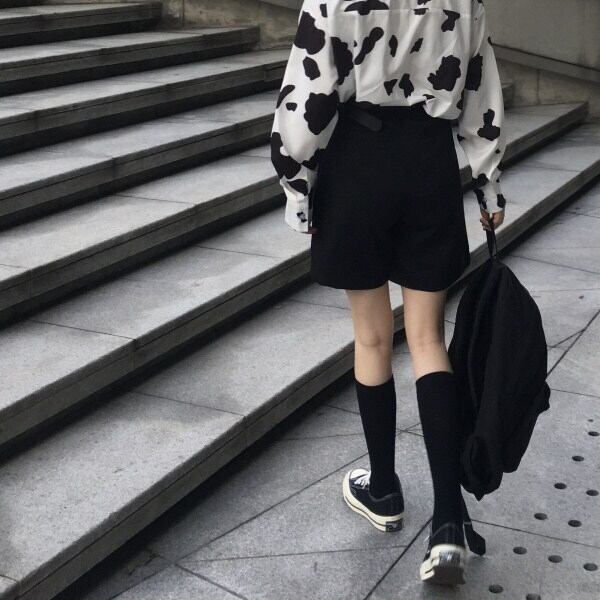 スプリングレッドシャツ ブラックショーツ スタンダードスタイル ロング レトロ 春物 ブルマー YY-ファッション35016040137