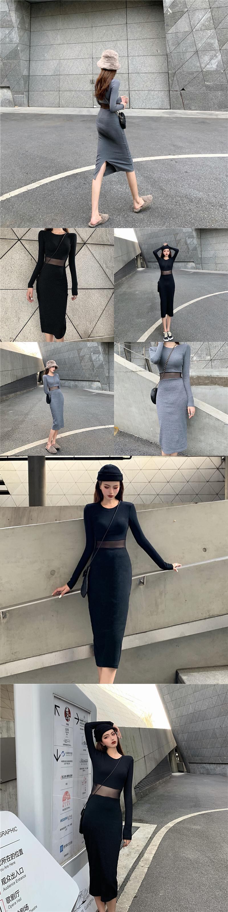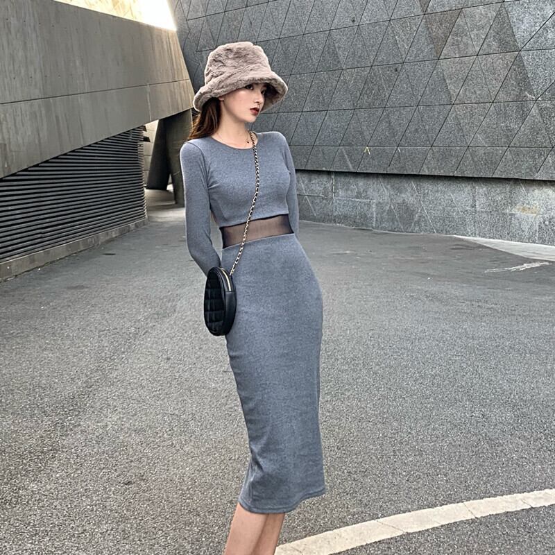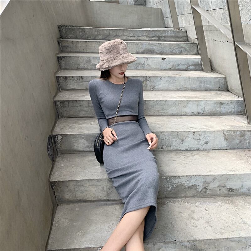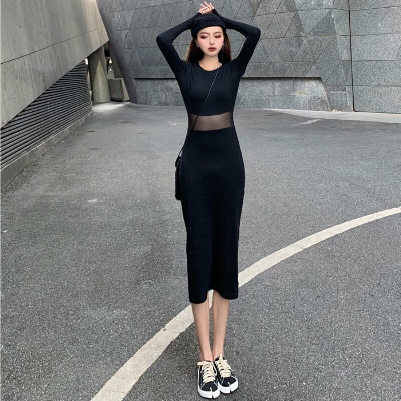 オータムウィンターカジュアルスリムメッシュドレス レディース 秋物 冬物 ステッチ YY-ファッション17586725408