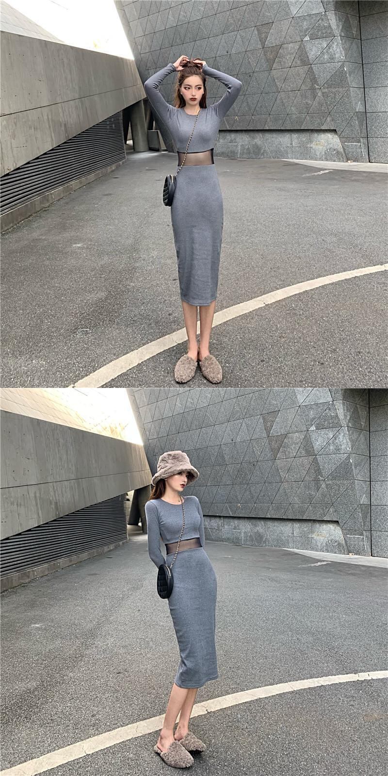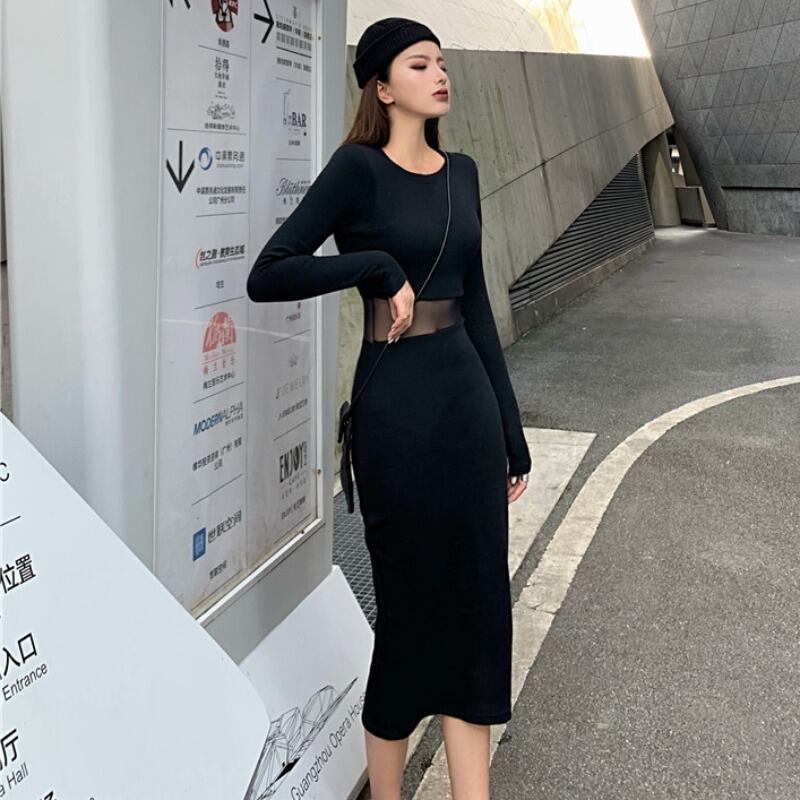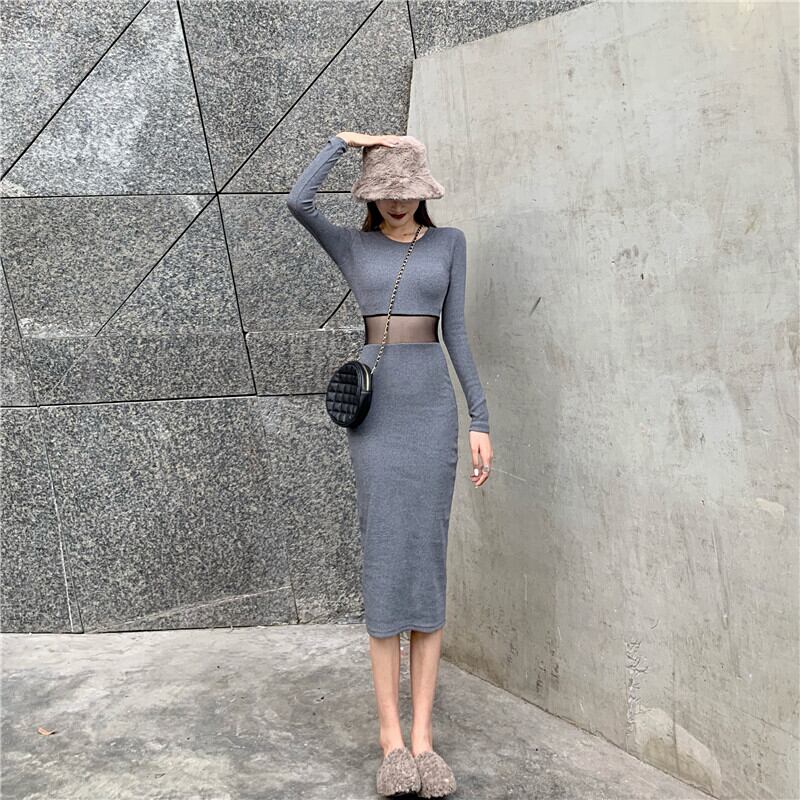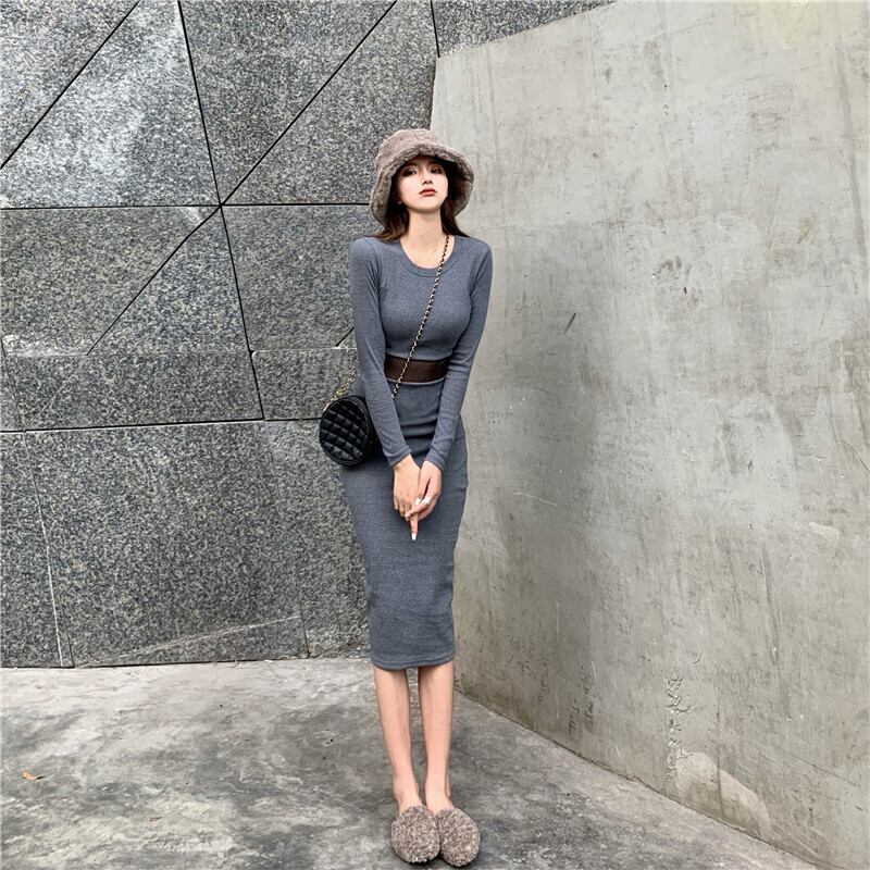 オータムウィンターカジュアルスリムメッシュドレス レディース 秋物 冬物 ステッチ YY-ファッション17586725408