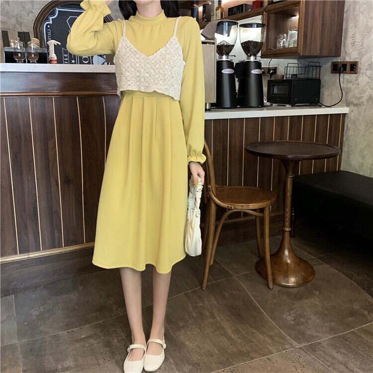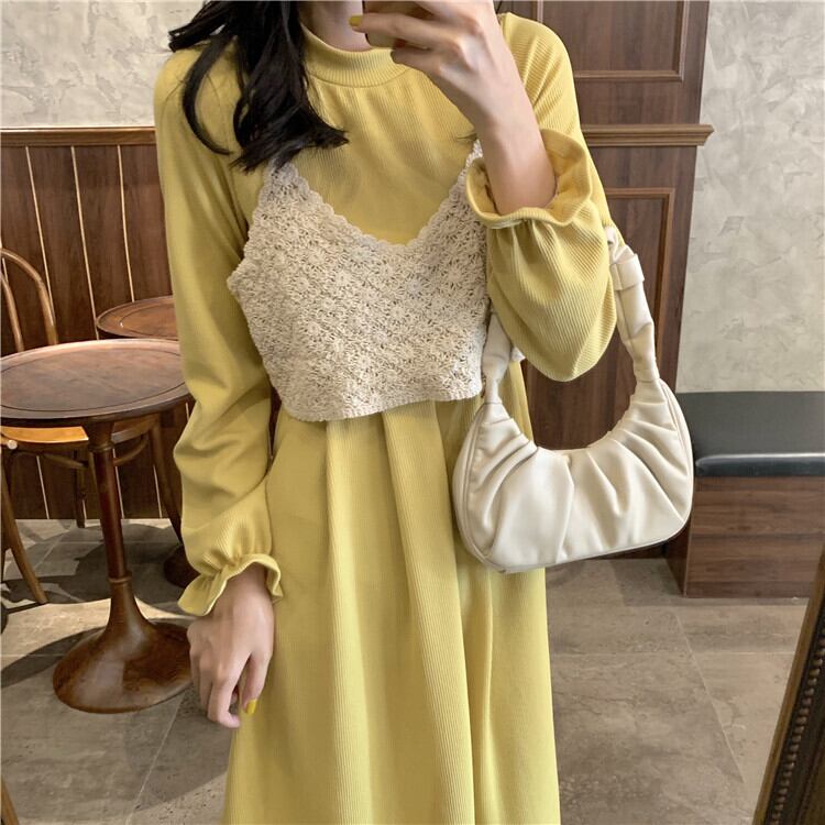 色:シングルアプリコットベスト,黒ワンピース,黄色のワンピースをドレスアップ