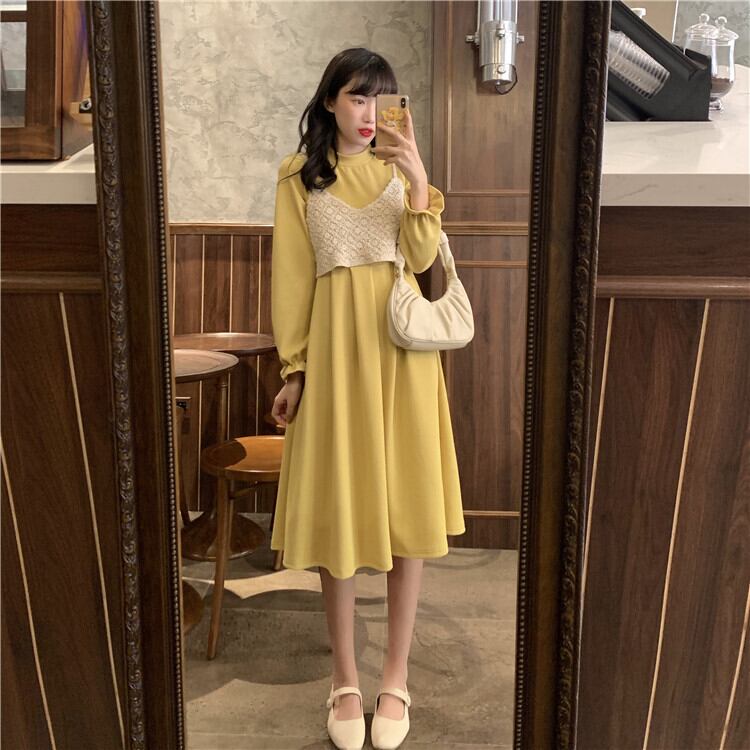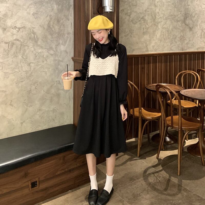 スリーブプリーツドレス スプリングスタンダードニットジャカード レトロ 春物 YY-ファッション2307488171