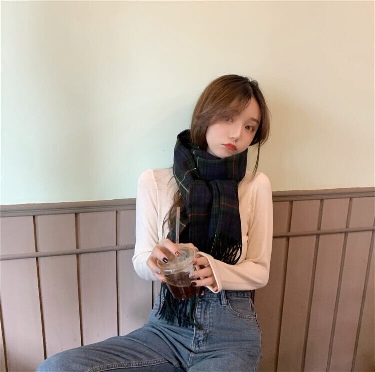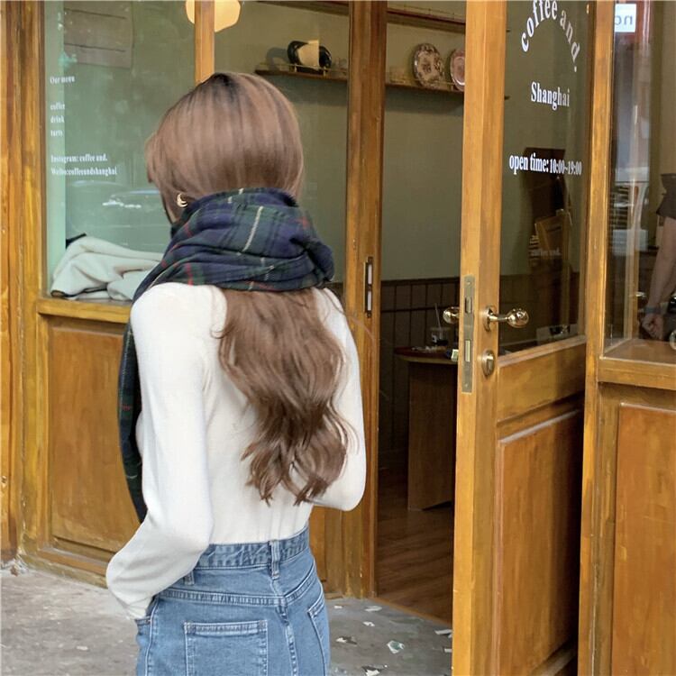 格子柄スカーフ ウィンターレッドニット 冬物 YY-ファッション79967634900