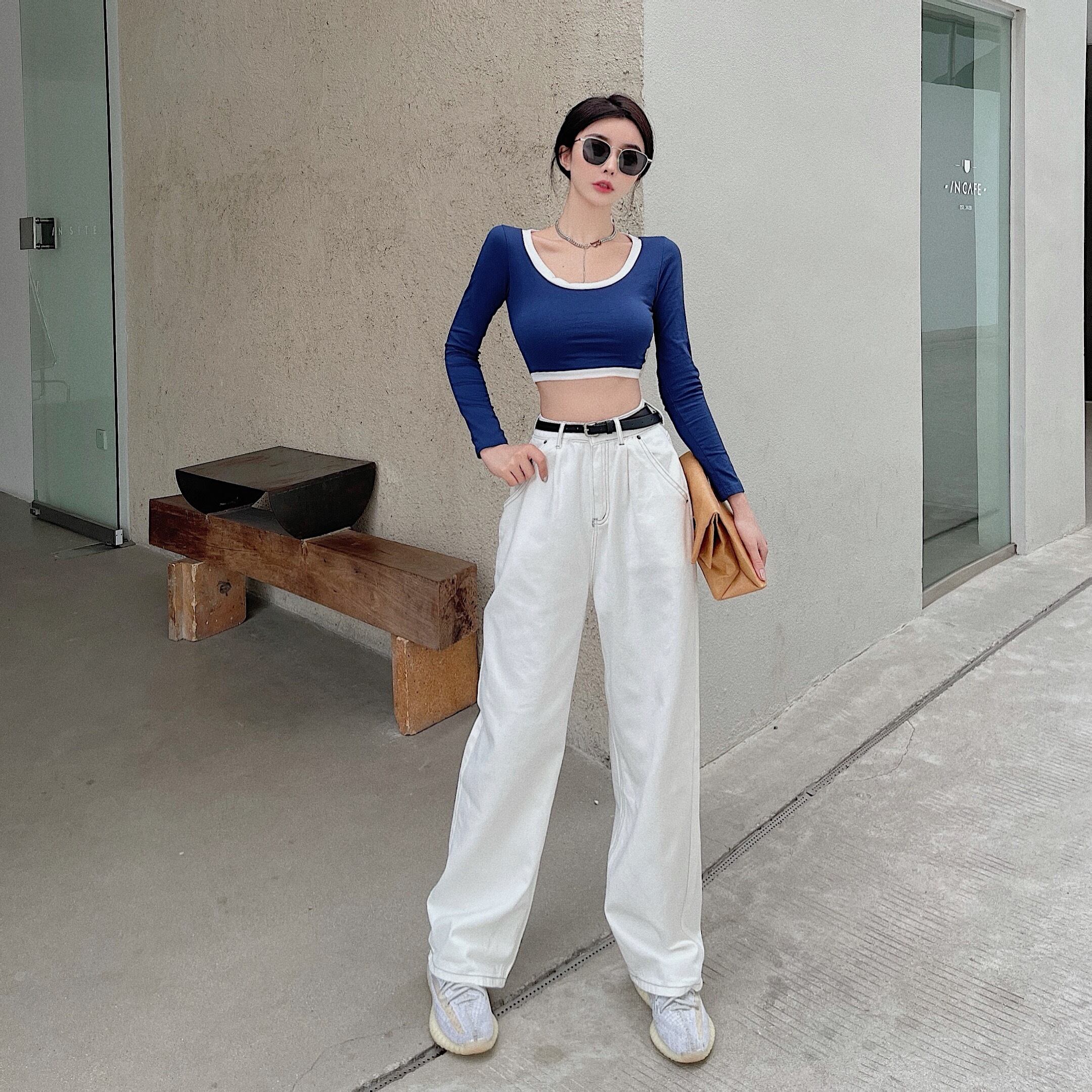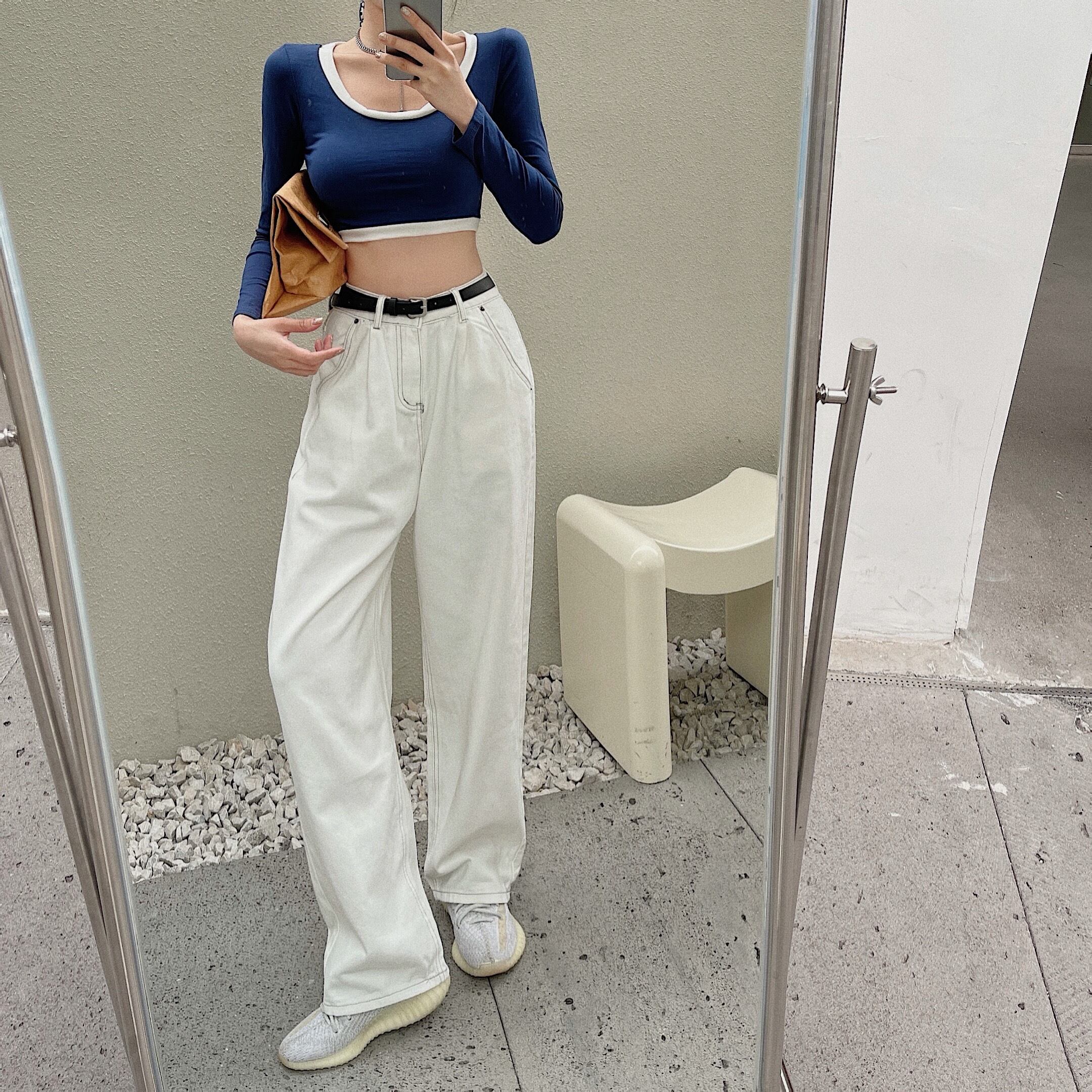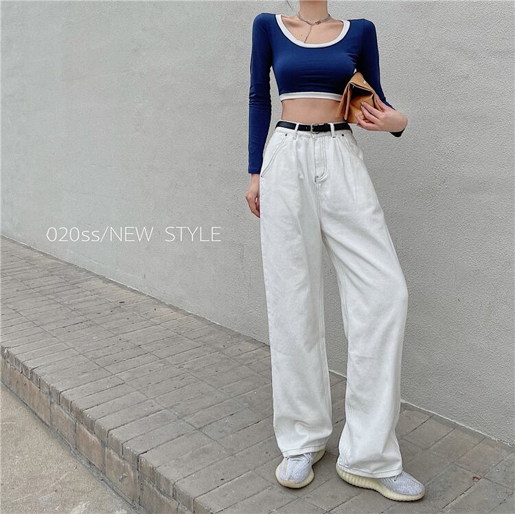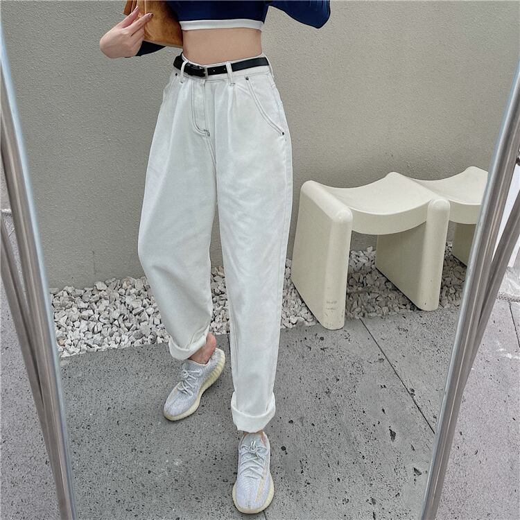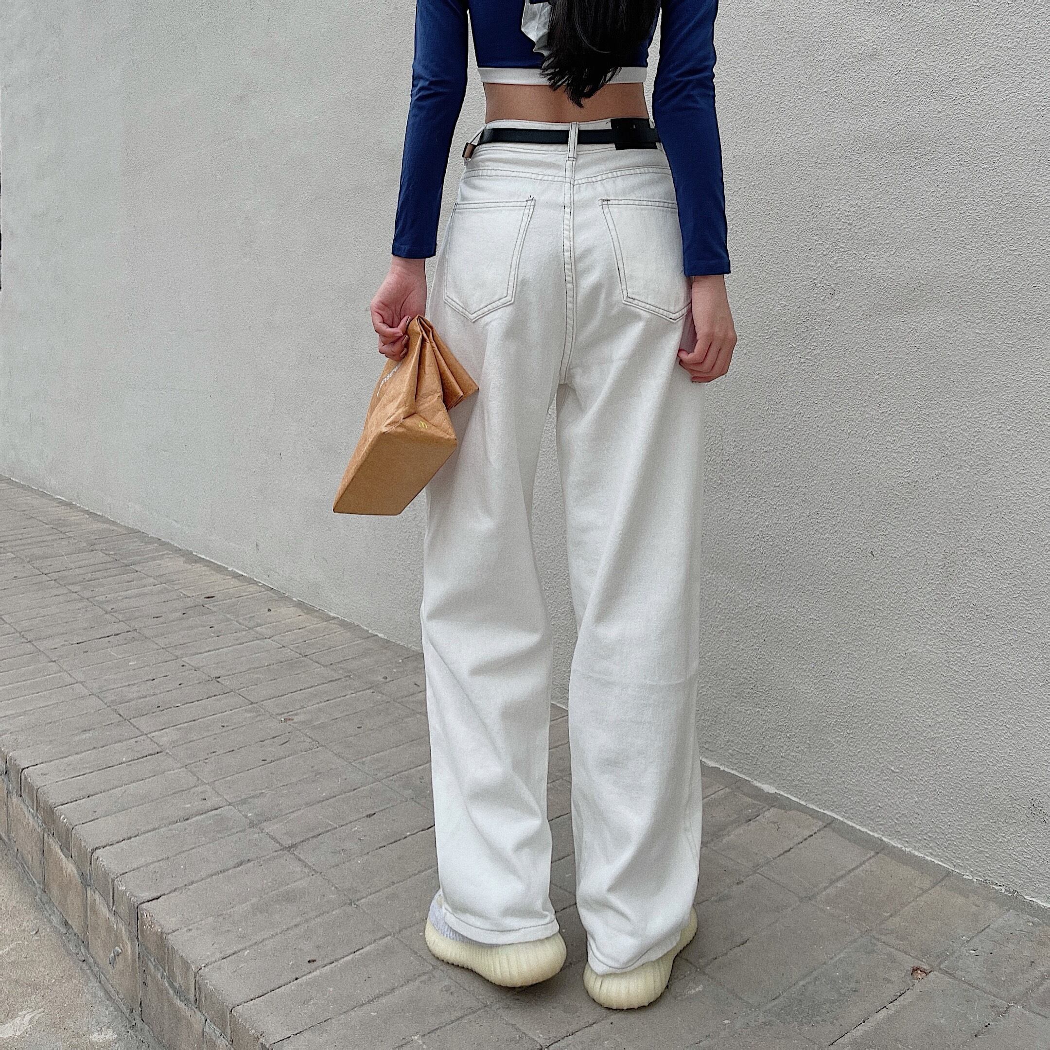 ジーンズ ハイウェストウェストルーズスリムオータムウィンターホワイトパンツ 秋物 冬物 YY-ファッション37438812616