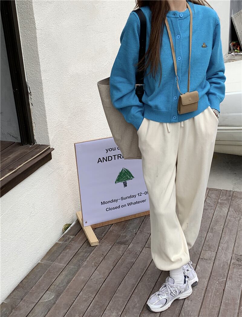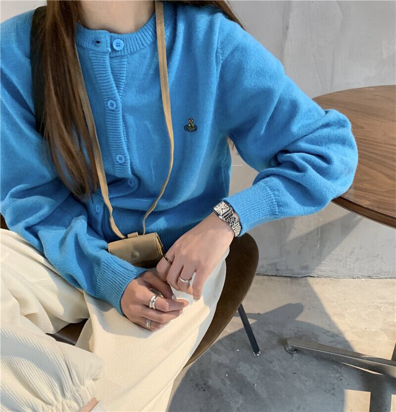 ショートニットカーディガンスプリングルーズブルーセーター コート 長袖スリーブトップス ロング 春物 YY-ファッション12574355025