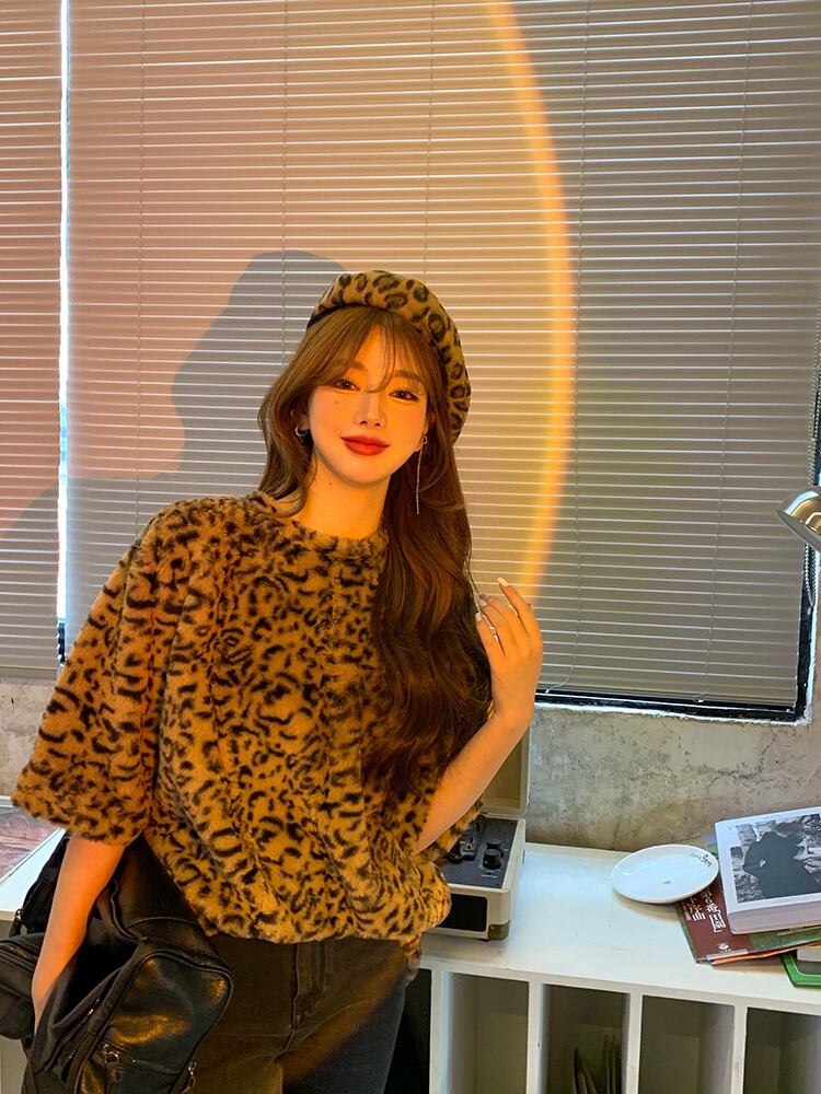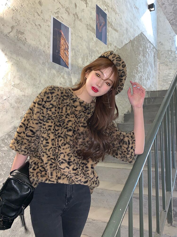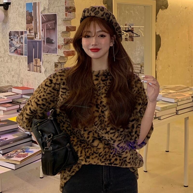 スプリングカジュアルスタンダードルーズレオパードプリント柄Tシャツ レトロ 春物 YY-ファッション67795028281