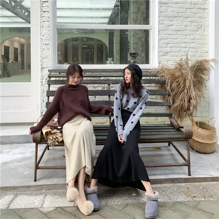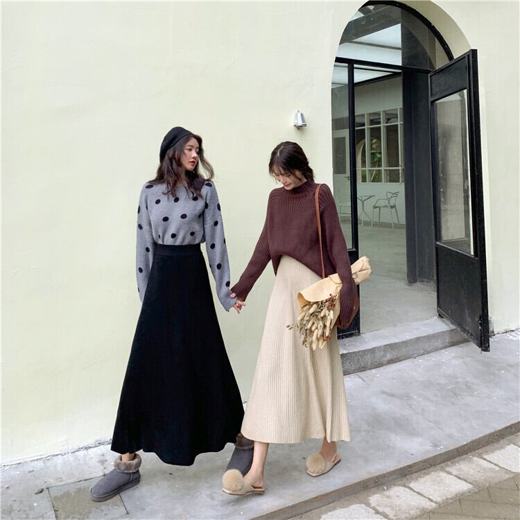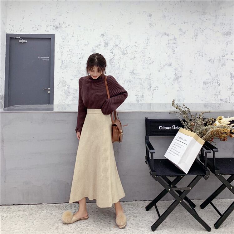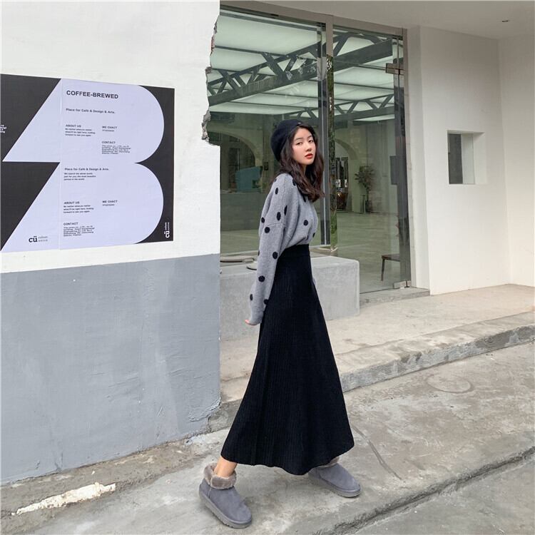 ニットスカート オータムウィンターハイウェストウェスト薄手ルーズセーター 秋物 冬物 YY-ファッション71209350221