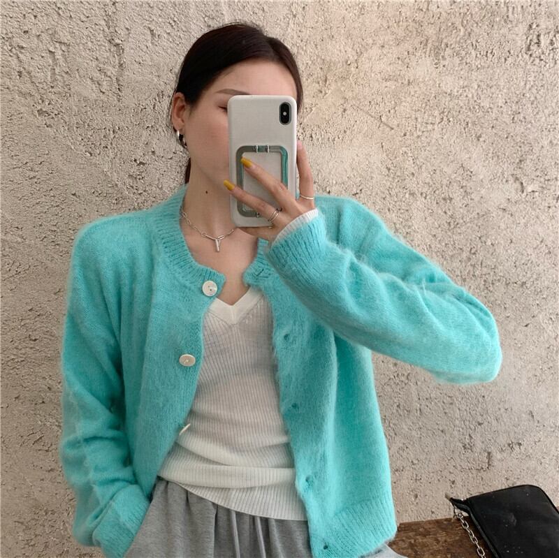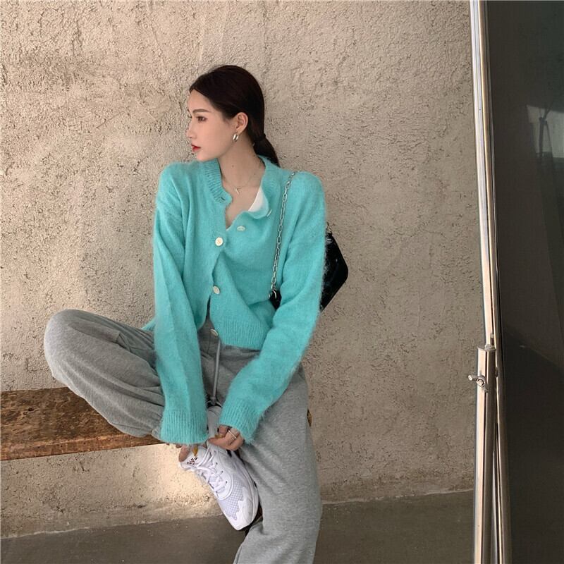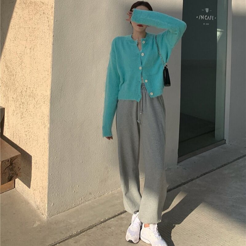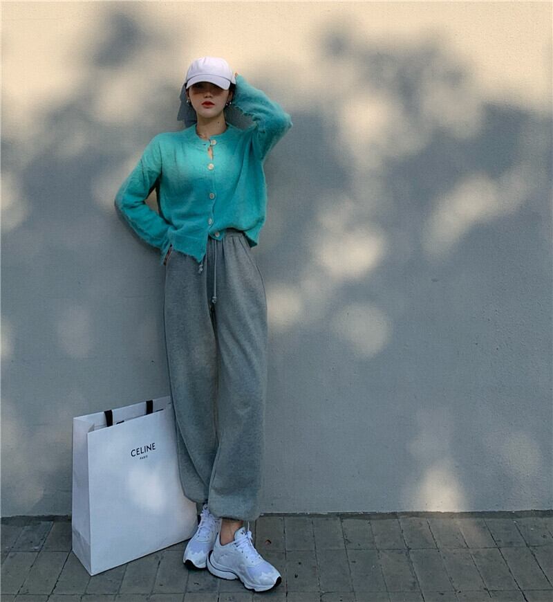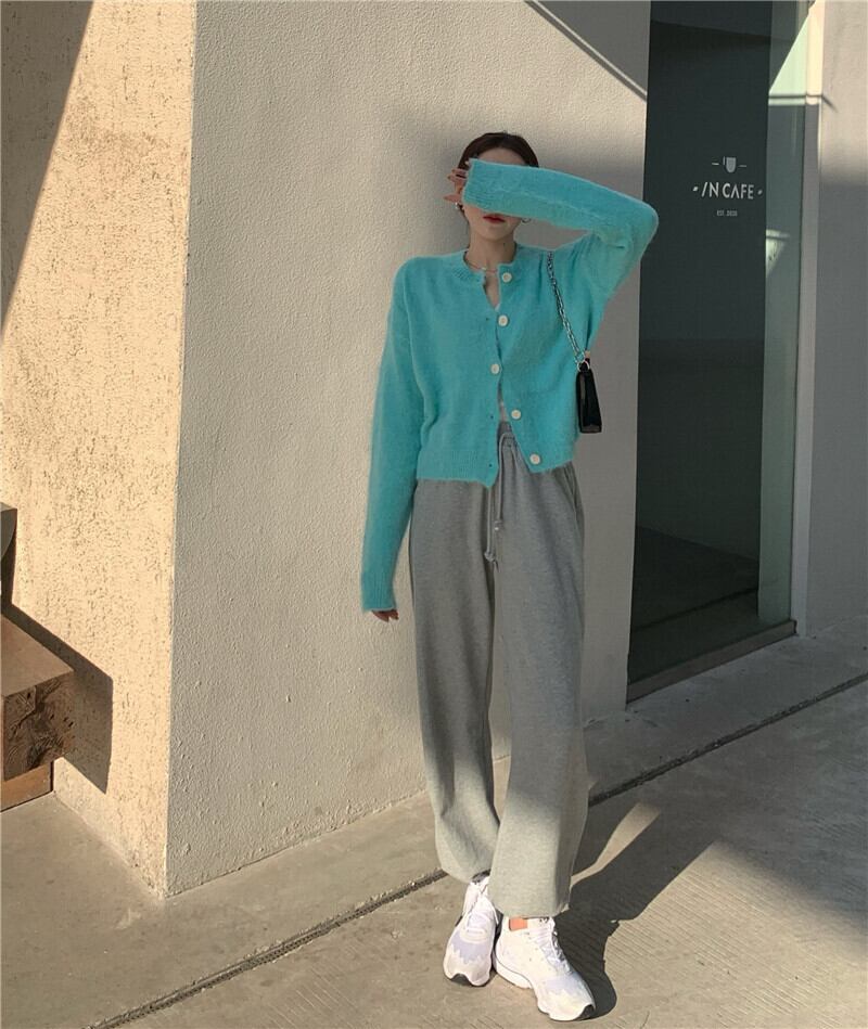 色:ホワイトベース,アクアブルーカーディガン,グレーガードパンツ