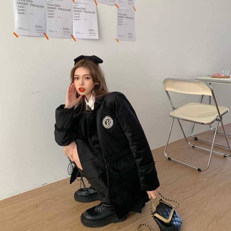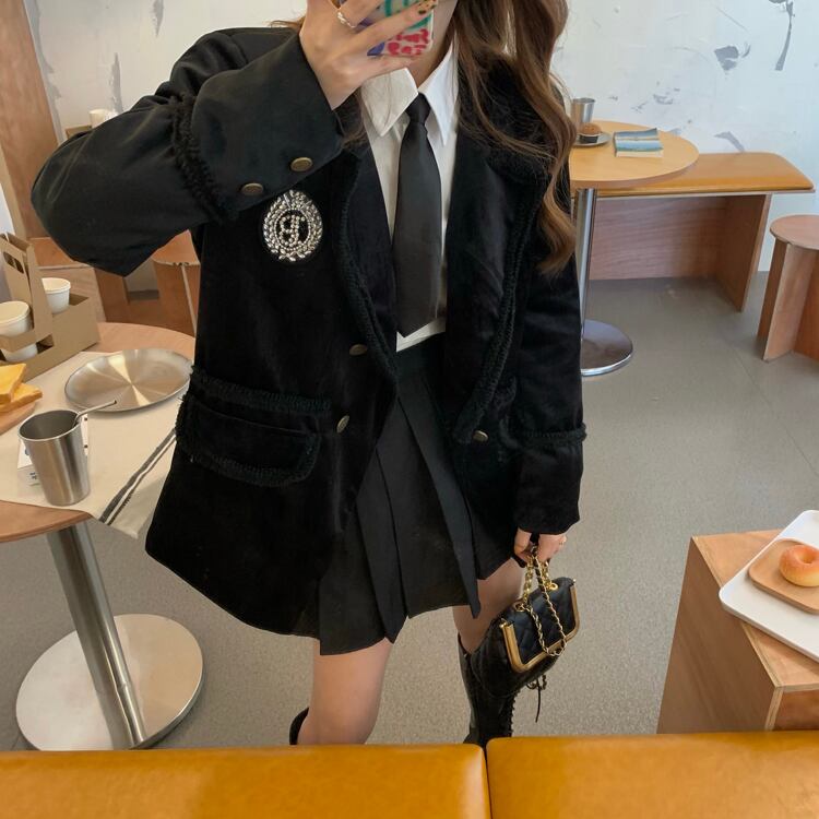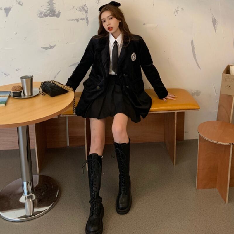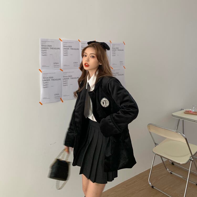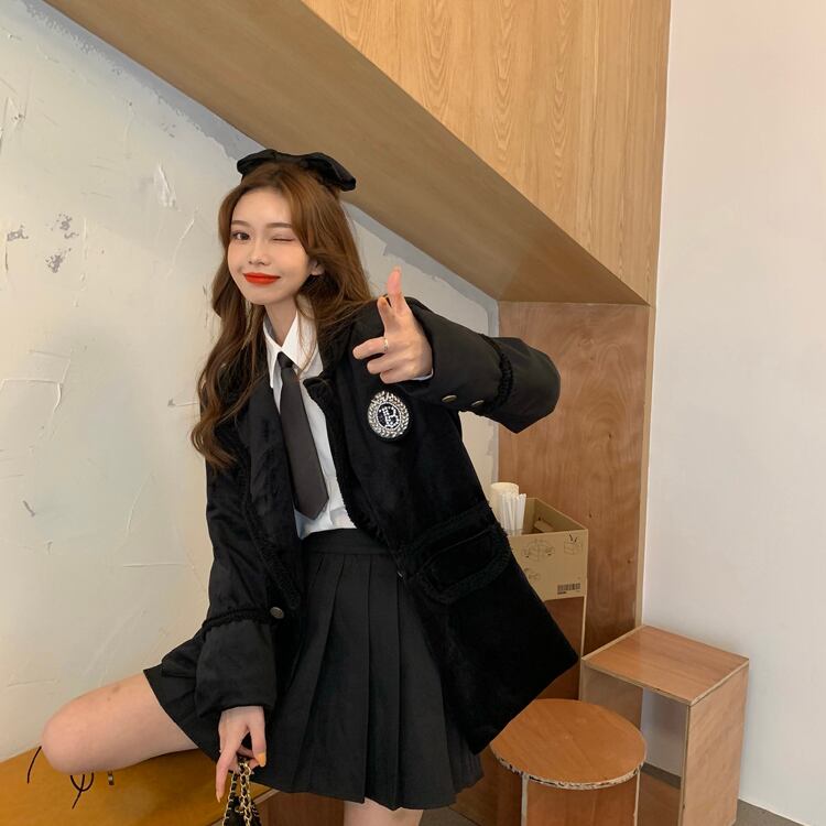 スプリングラインストーンベルベットコート シャツ プリーツスカート レッド コットン 刺繍 春物 YY-ファッション47226323539