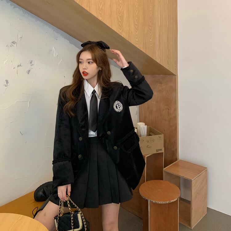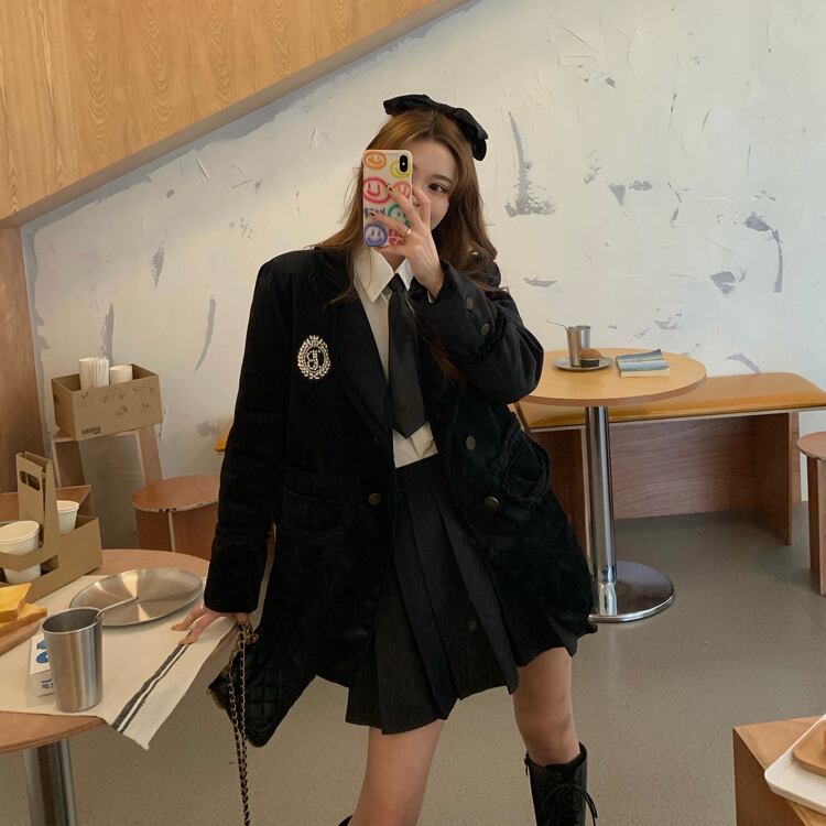 色:コットンジャケット,シャツと蝶ネクタイ,プリーツスカート