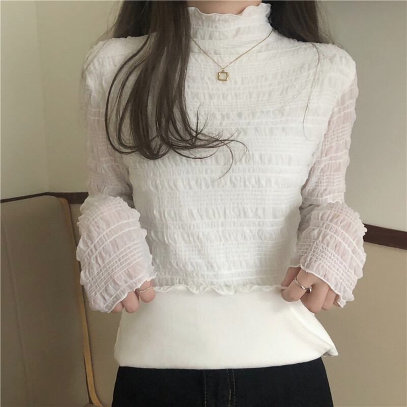 レースシャツ オータムウィンタースタイルルーズベルベットプルオーバー 長袖スリーブトップス ロング 秋物 冬物 YY-ファッション31902083190