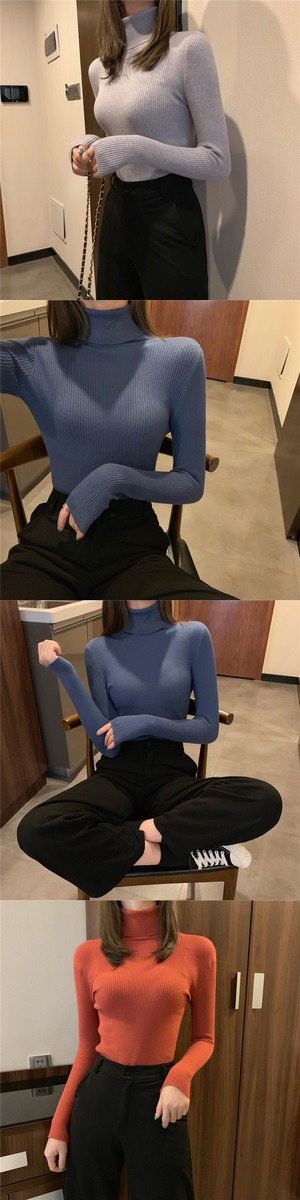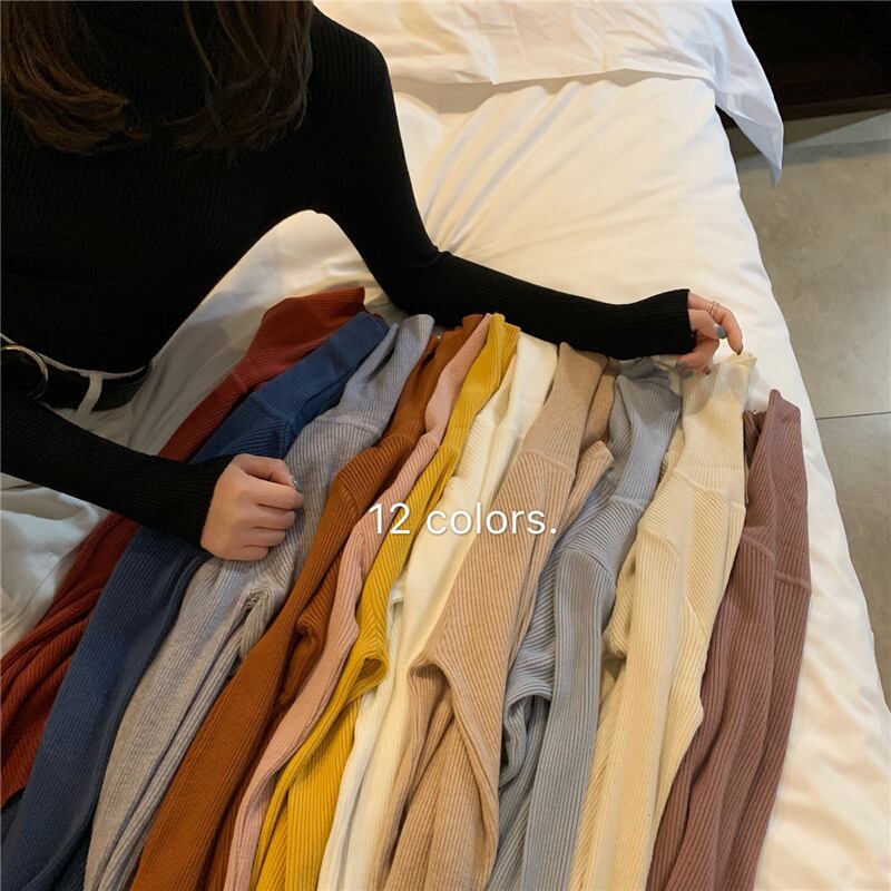 スプリングベーシックスタイルソリッド カラートップス スリムセーター ロング 春物 ソリッドカラー YY-ファッション48611059408