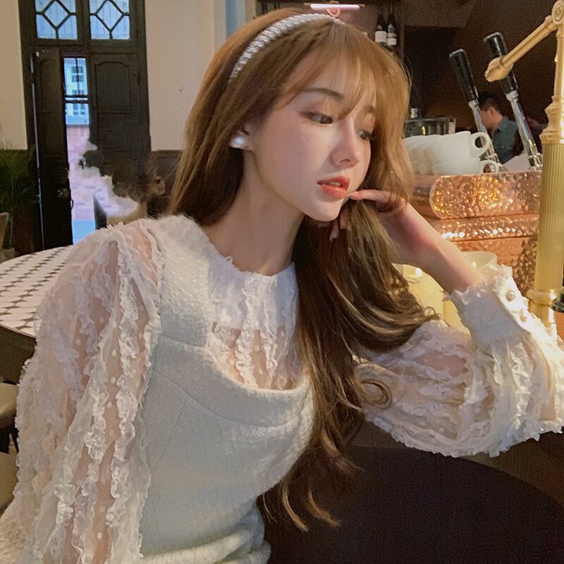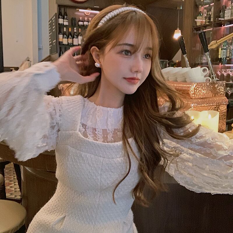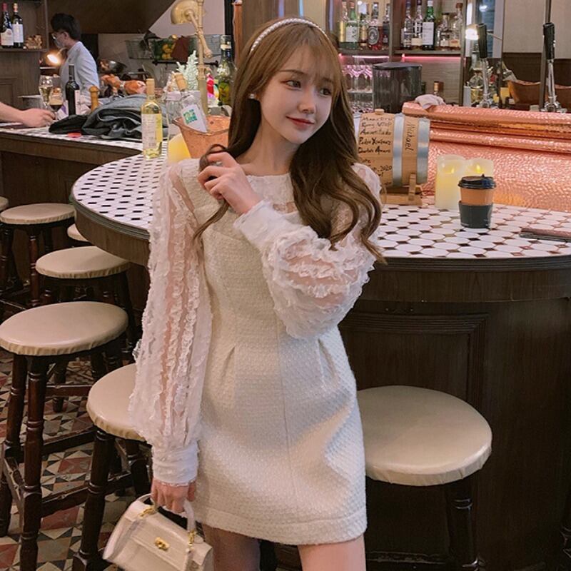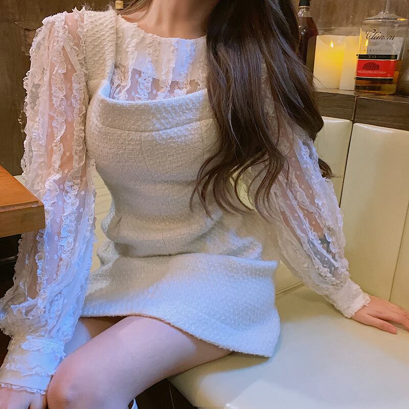 オータムウィンターレースブラウス ソリッド カラードレス ロング 秋物 冬物 ソリッドカラー YY-ファッション50054175988