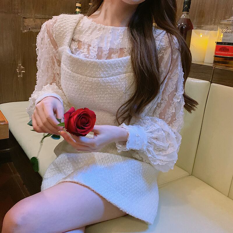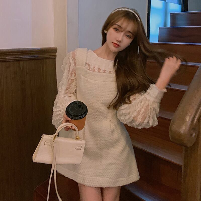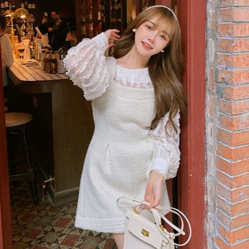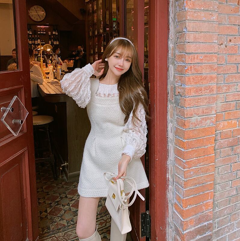 色:8611#白いレトロなレースシャツ,8613#ピュアカラーダッフルベストドレス
