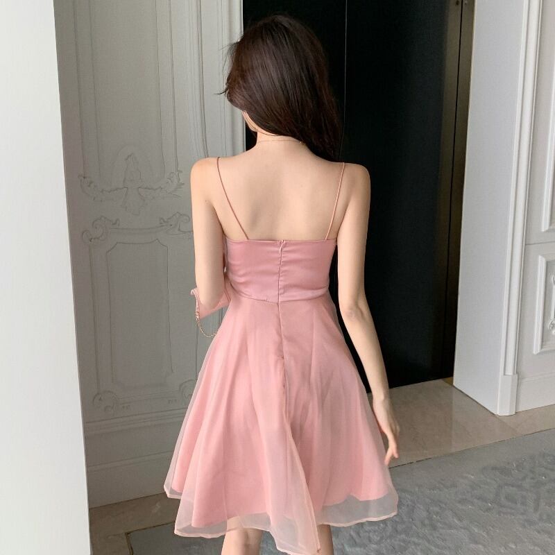 オータムウィンター薄手ドレス ソリッド カラーウェストメッシュAラインスカート 秋物 冬物 オフショルダー ソリッドカラー YY-ファッション81358768705