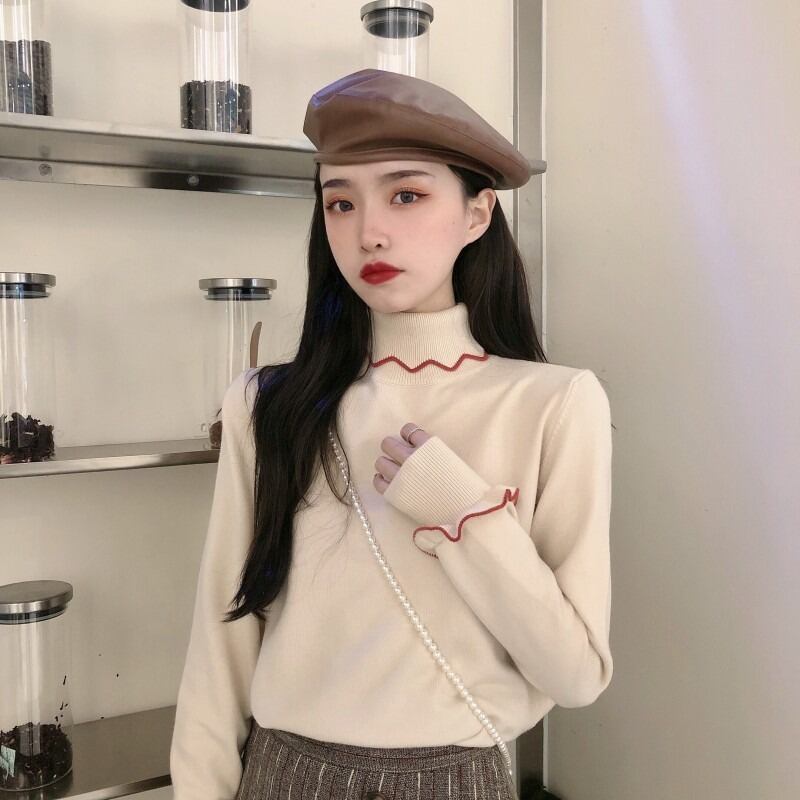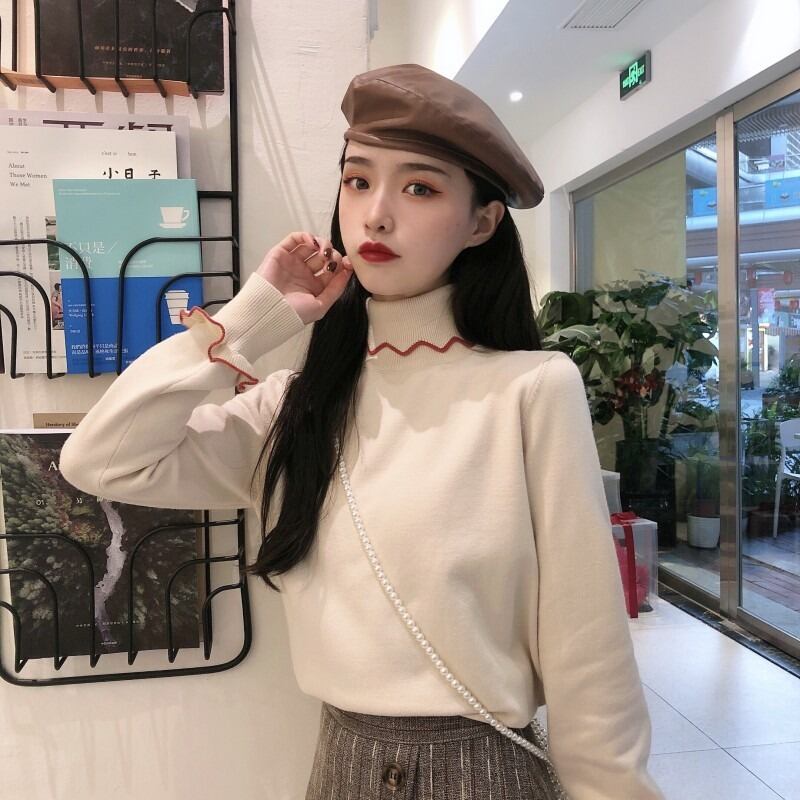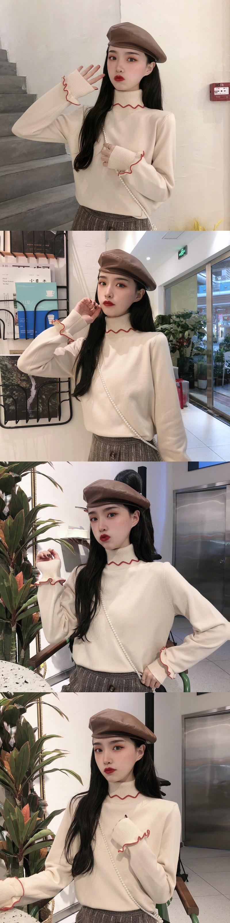 オータムウィンターレッドスリムプルオーバー セーター シャツ トップス ロング 秋物 冬物 YY-ファッション73350847524
