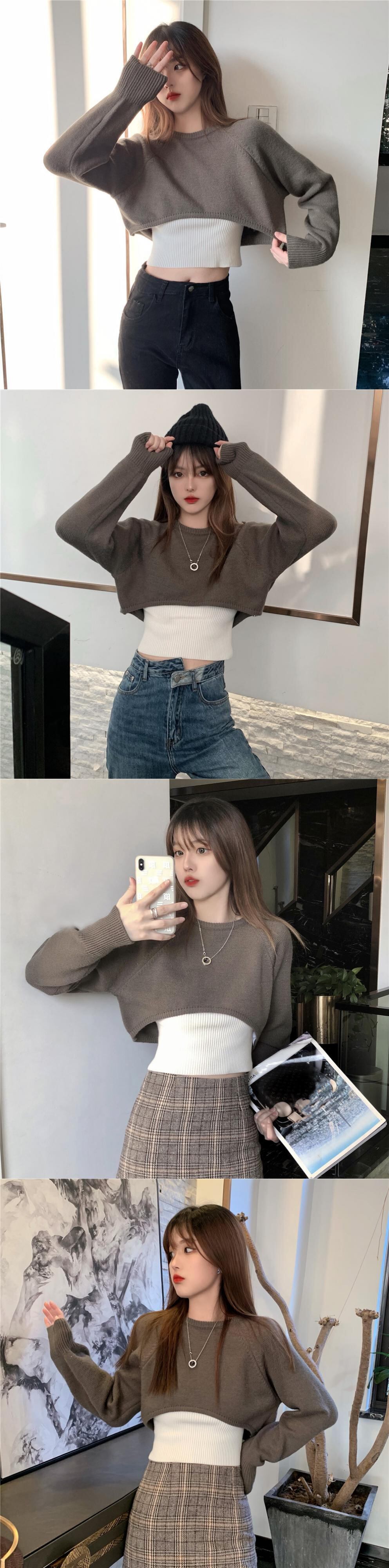 オータムショートセーター プルオーバー トップス ロング 秋物 YY-ファッション3895767734