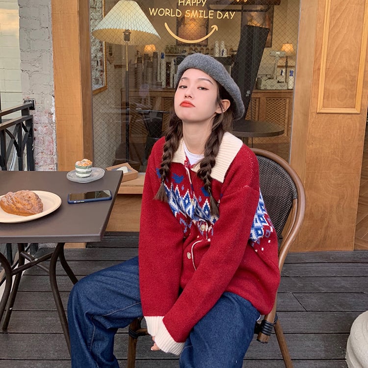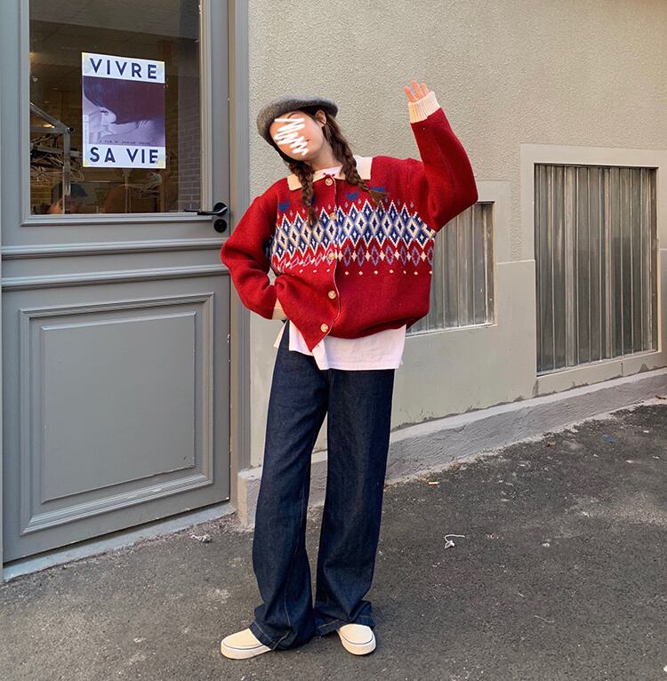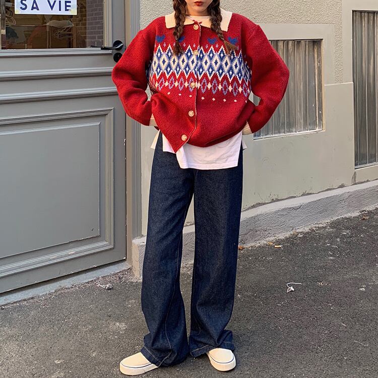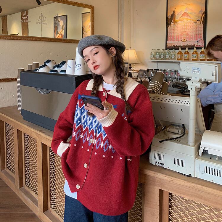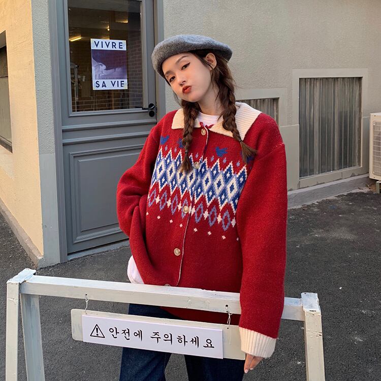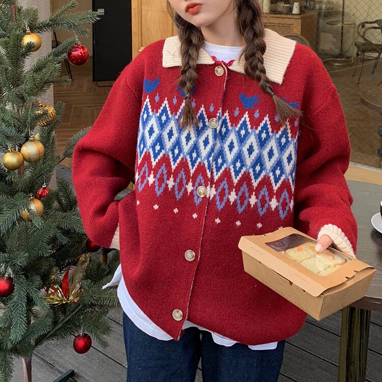 オータムウィンタースタイルスタンダードジャカードセーター ジャケット レディースニットカーディガントップス レトロ 秋物 冬物 YY-ファッション25673351119
