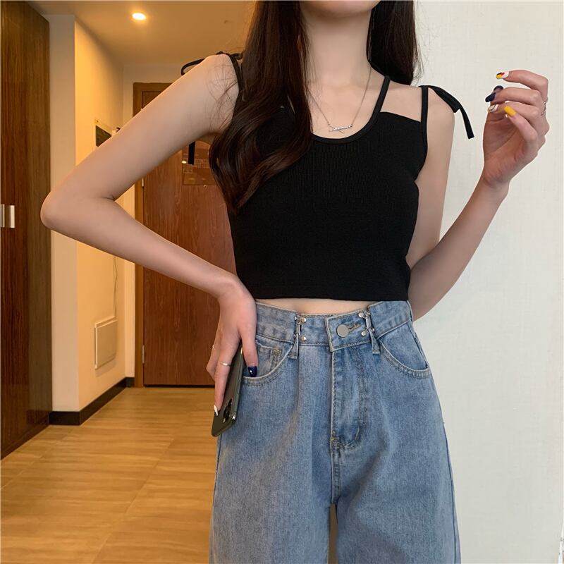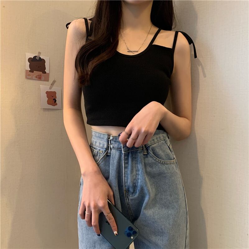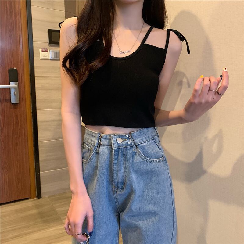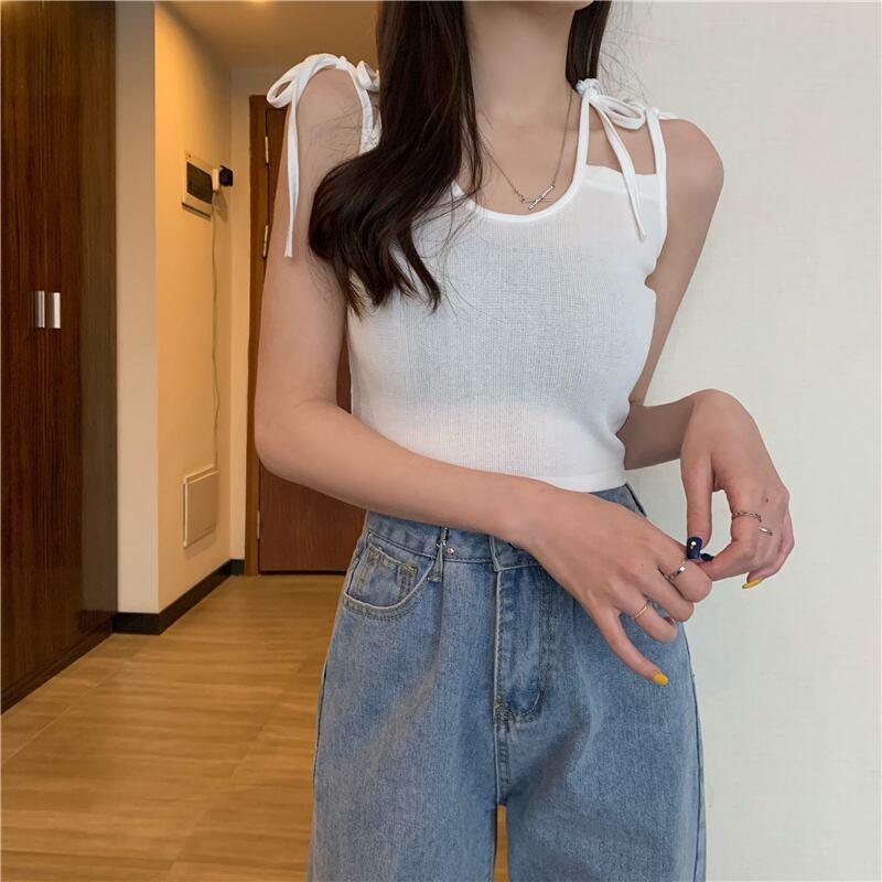 サイドリボンニットスプリングレッドスリムショートトップス 春物 YY-ファッション37986114968