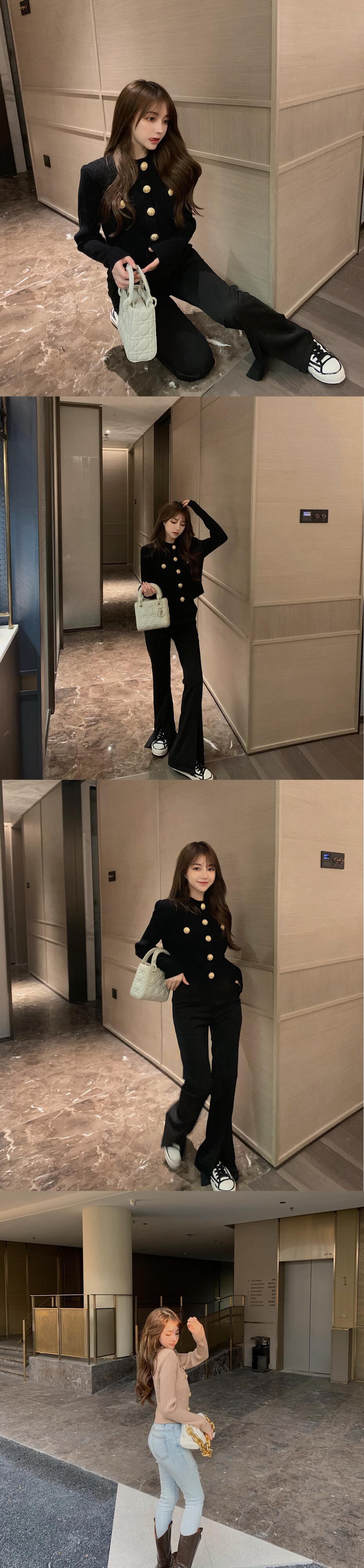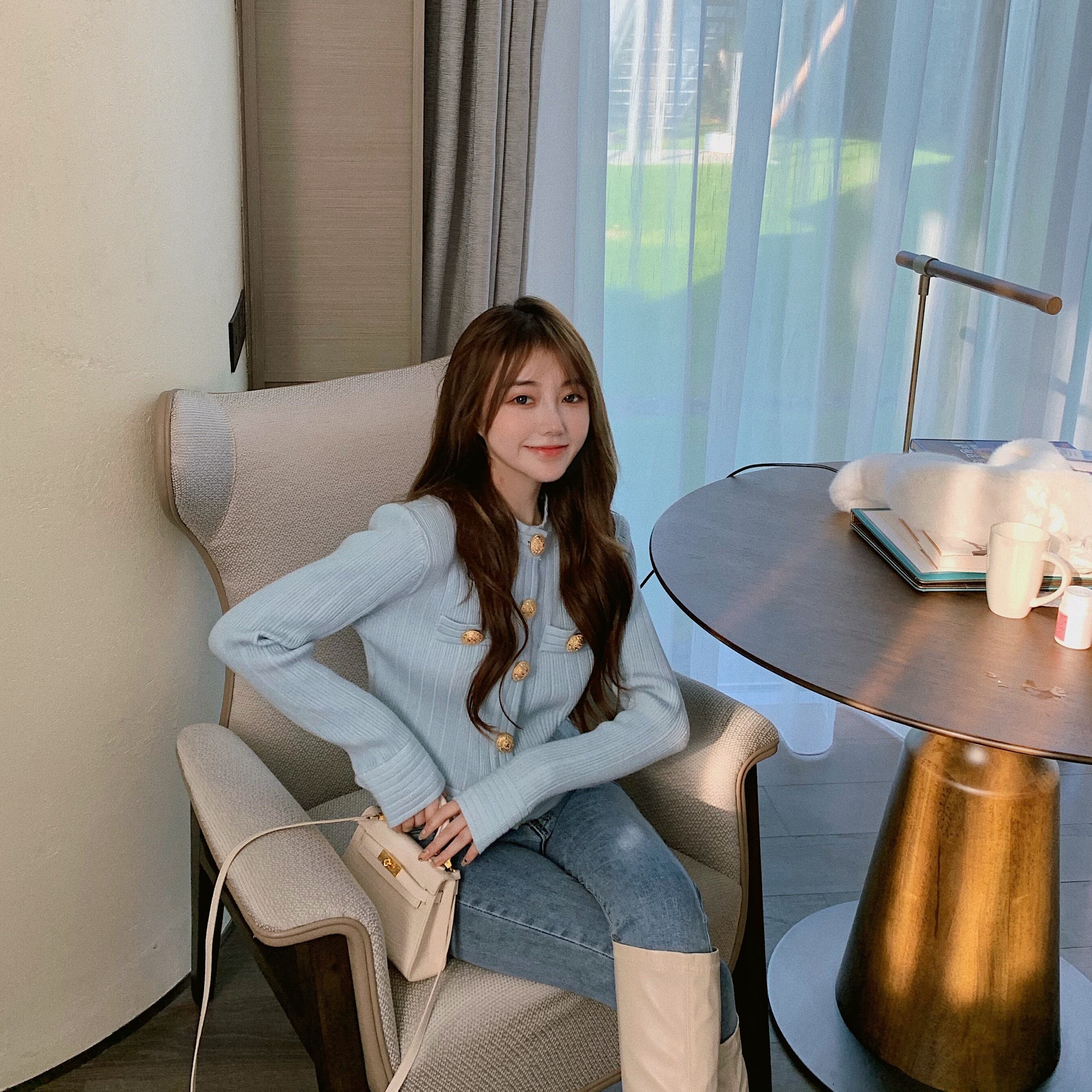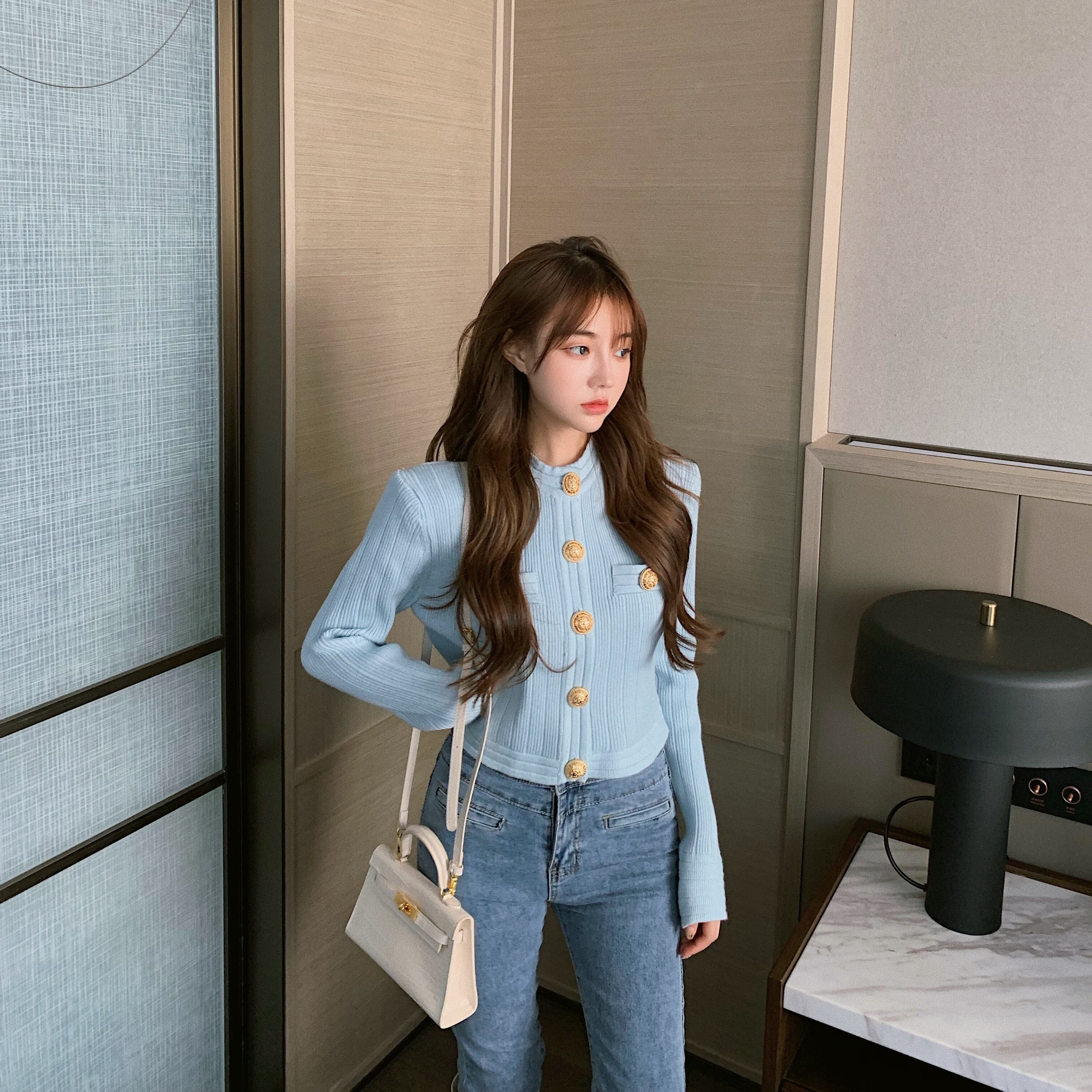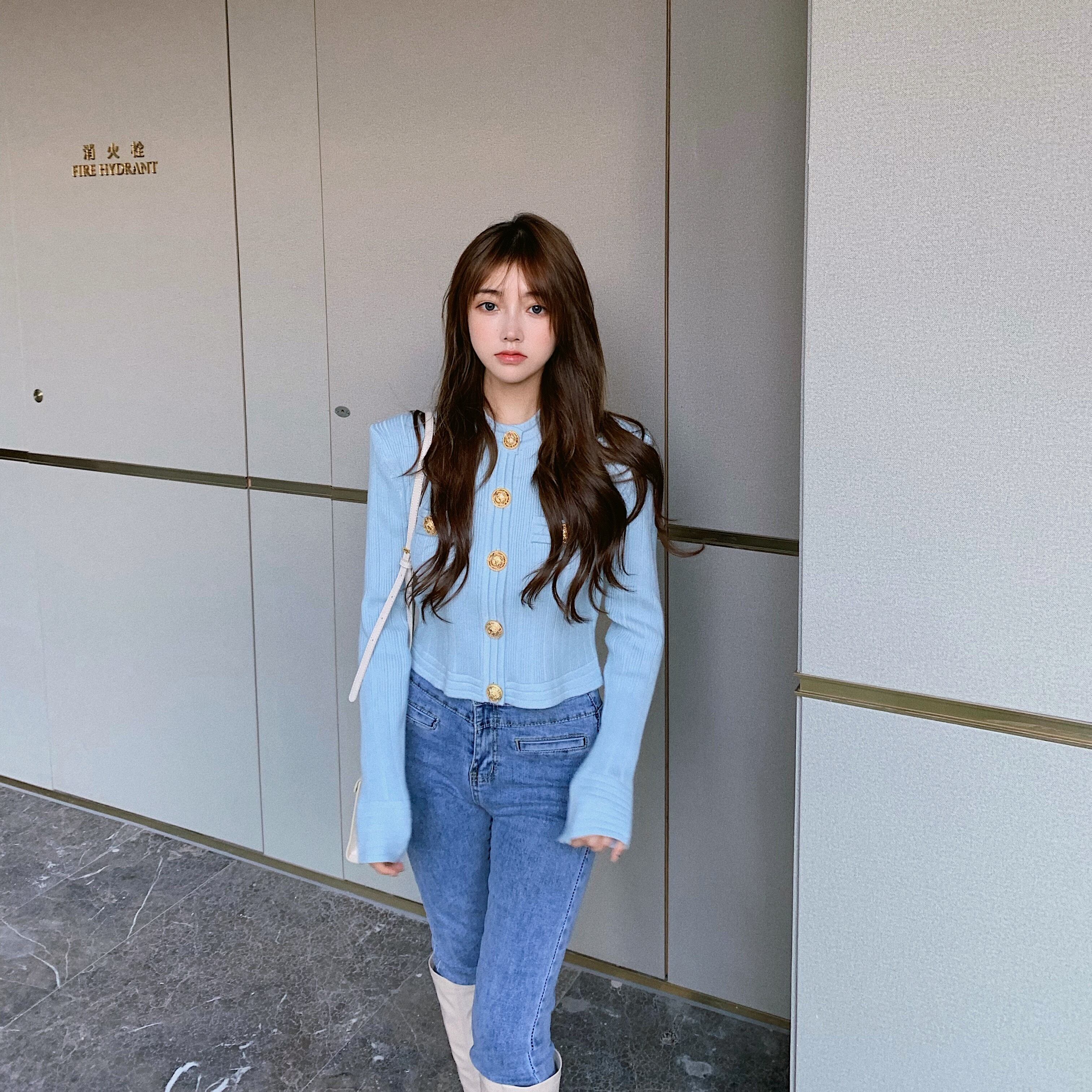 オータムウィンタースタイルスリムラウンドネックセーター ニットショートカーディガントップス ロング 秋物 冬物 Oネック YY-ファッション71130994862
