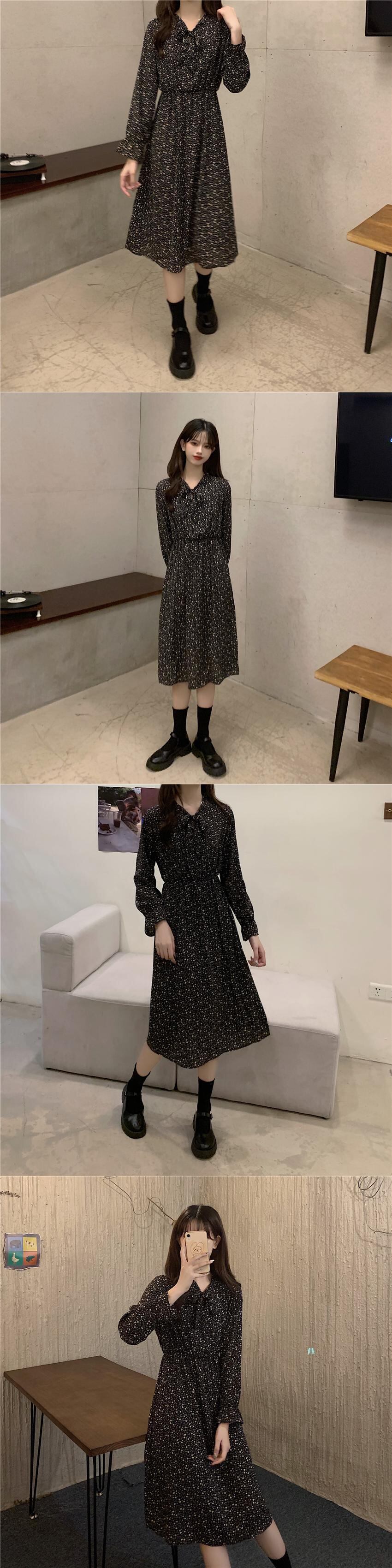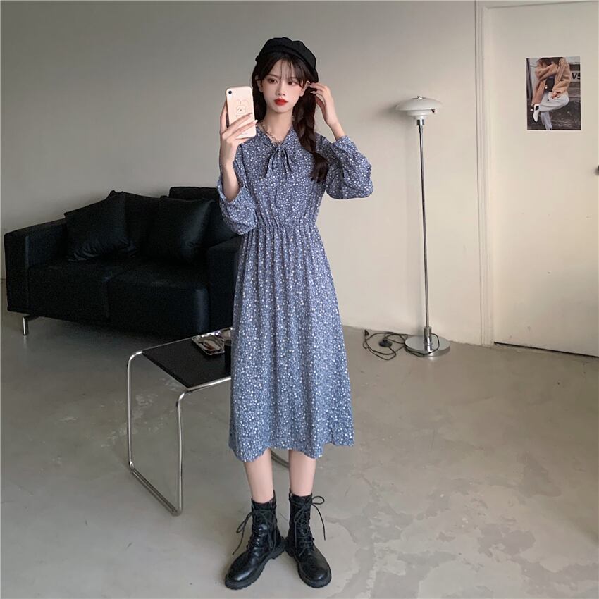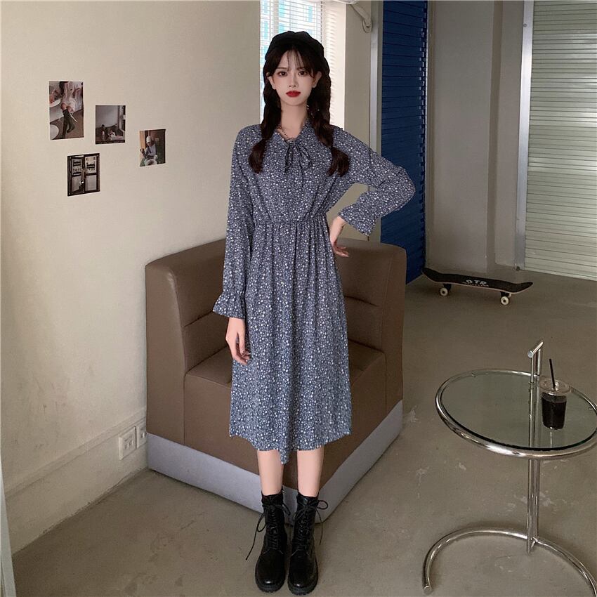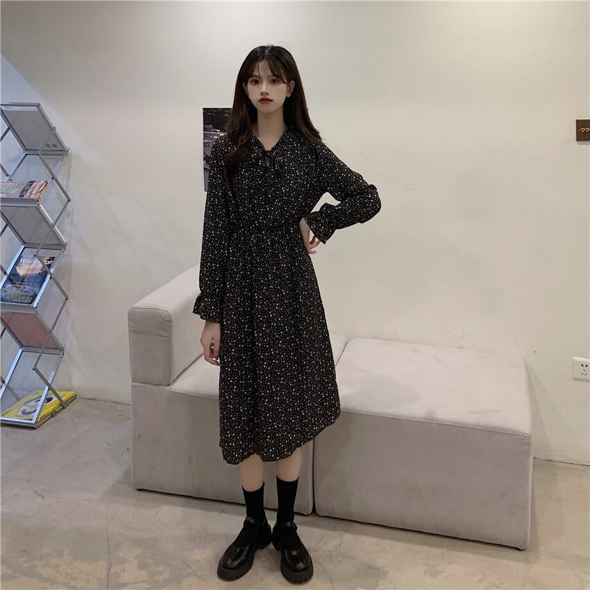 オータムウェスト薄手フローラルシフォンドレス スカート ロング 秋物 花柄 YY-ファッション63940576475