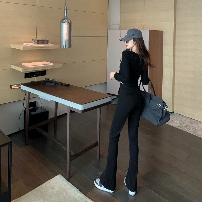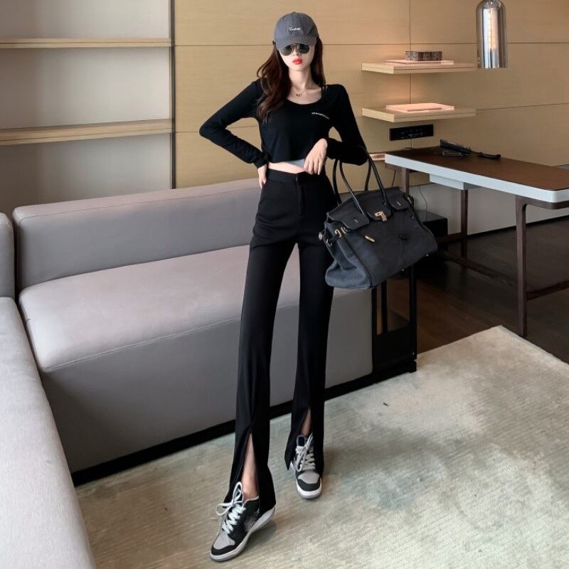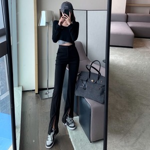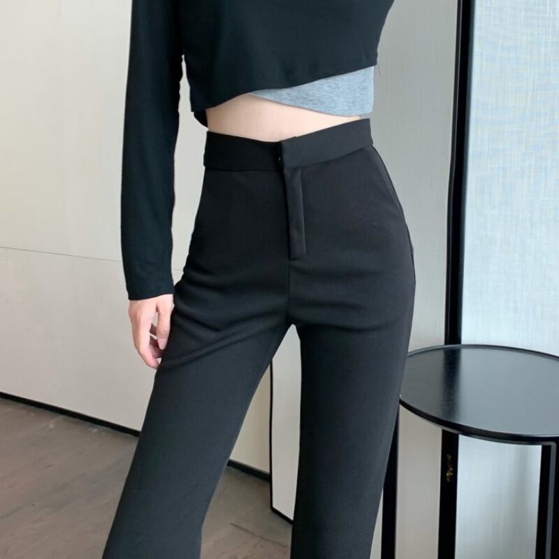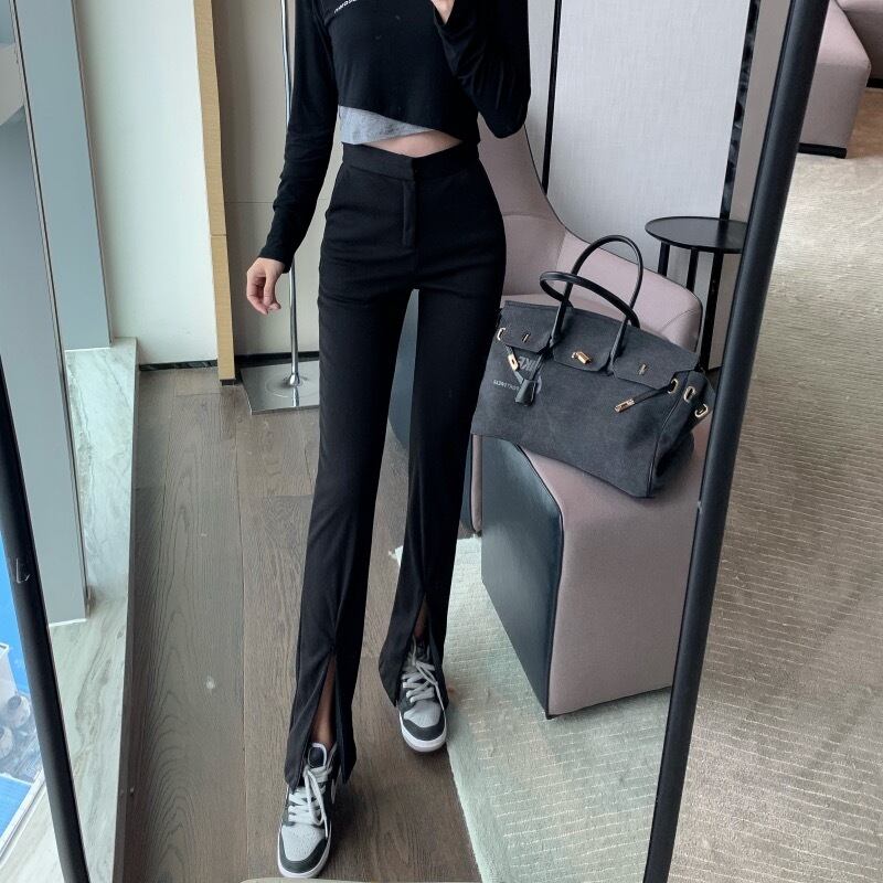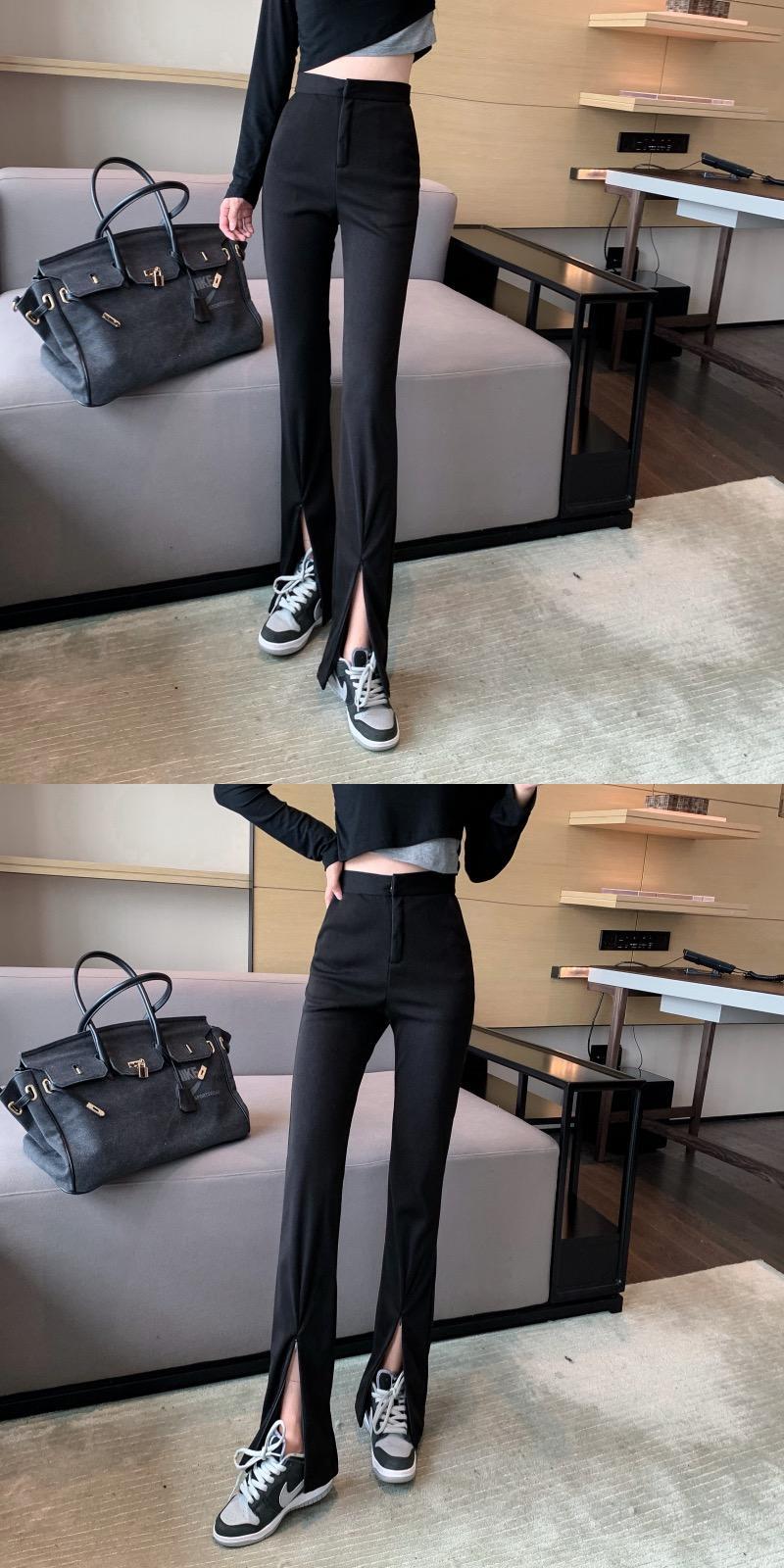 ブラックカジュアルパンツ オータムウィンターハイウェストウェストルーズ 秋物 冬物 YY-ファッション90601372365