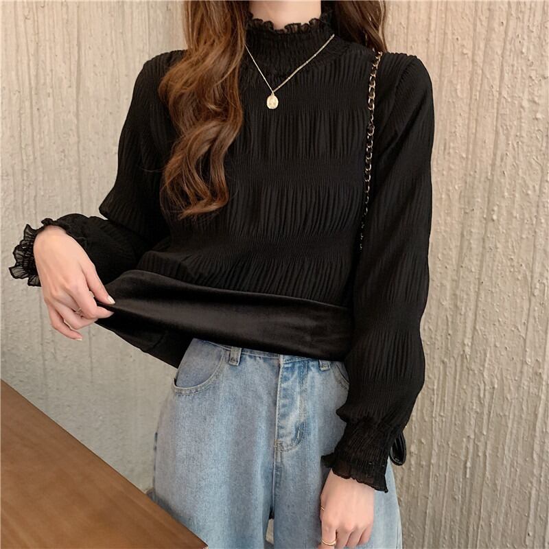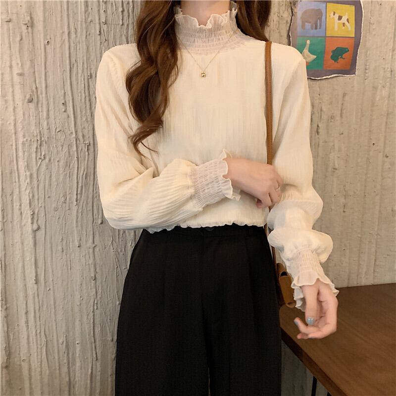 スプリングオータムスリムベルベットレースカラーシャツ レディース ロング 春物 秋物 YY-ファッション47180968344