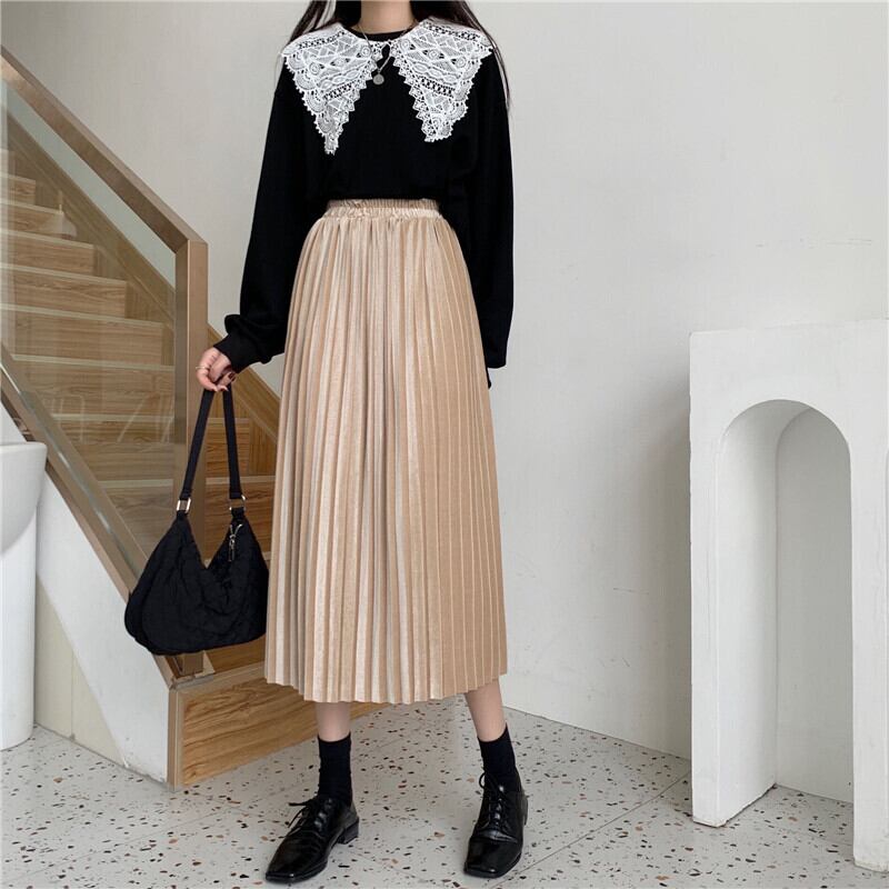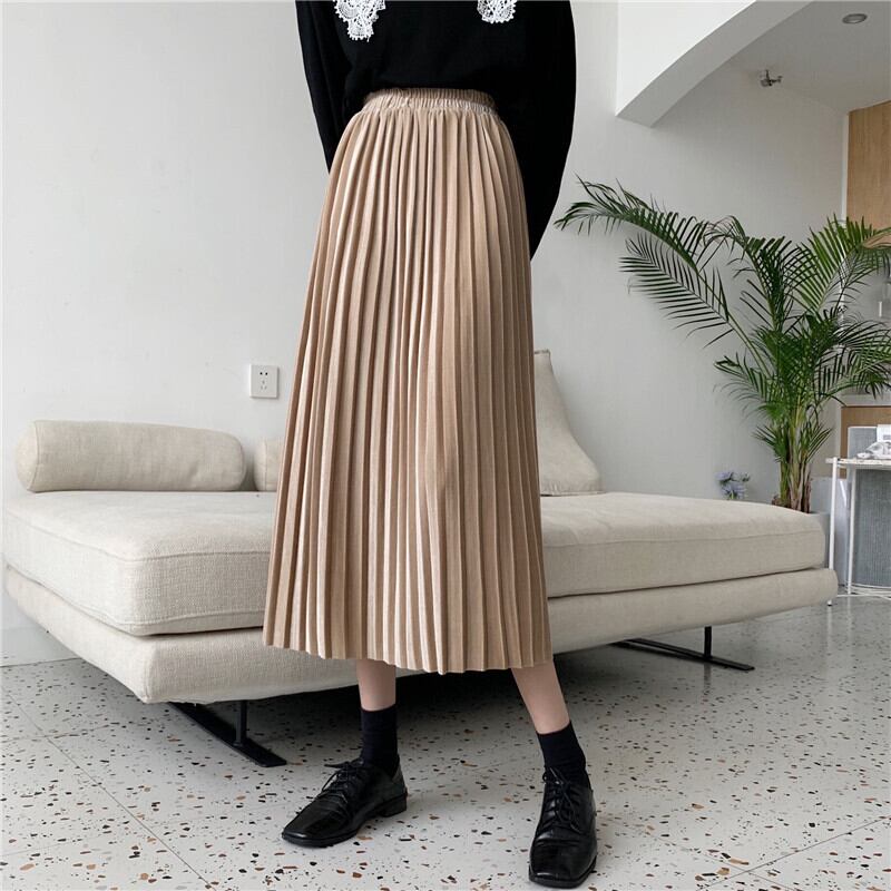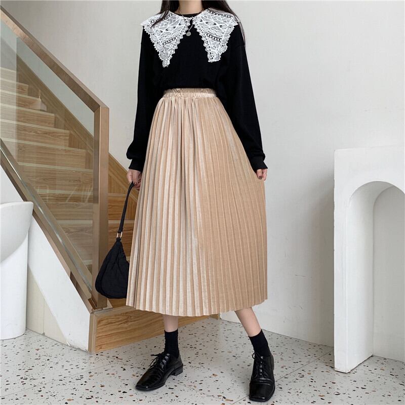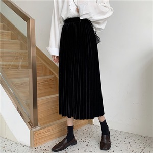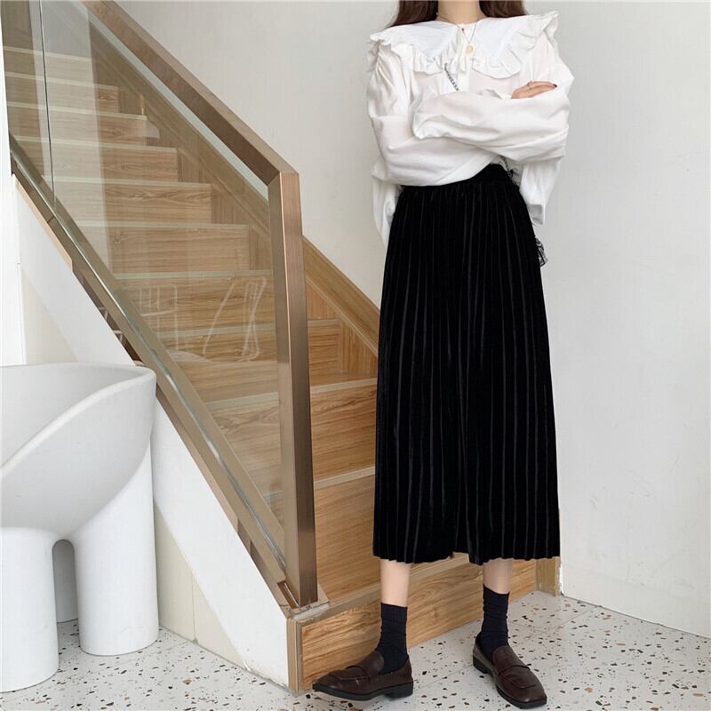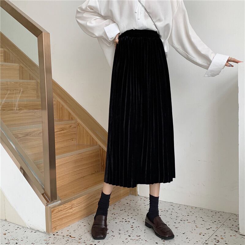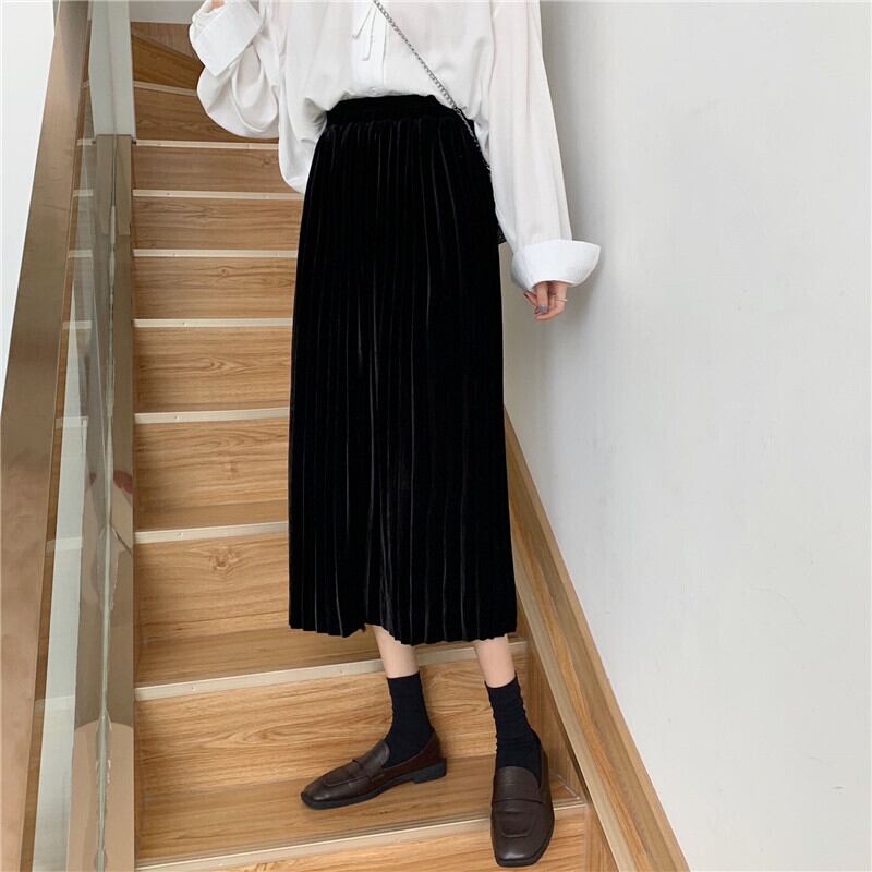 スカート レディースオータムウィンター薄手ベルベットハイウェストウェストブラックAライン 秋物 冬物 YY-ファッション35229255868