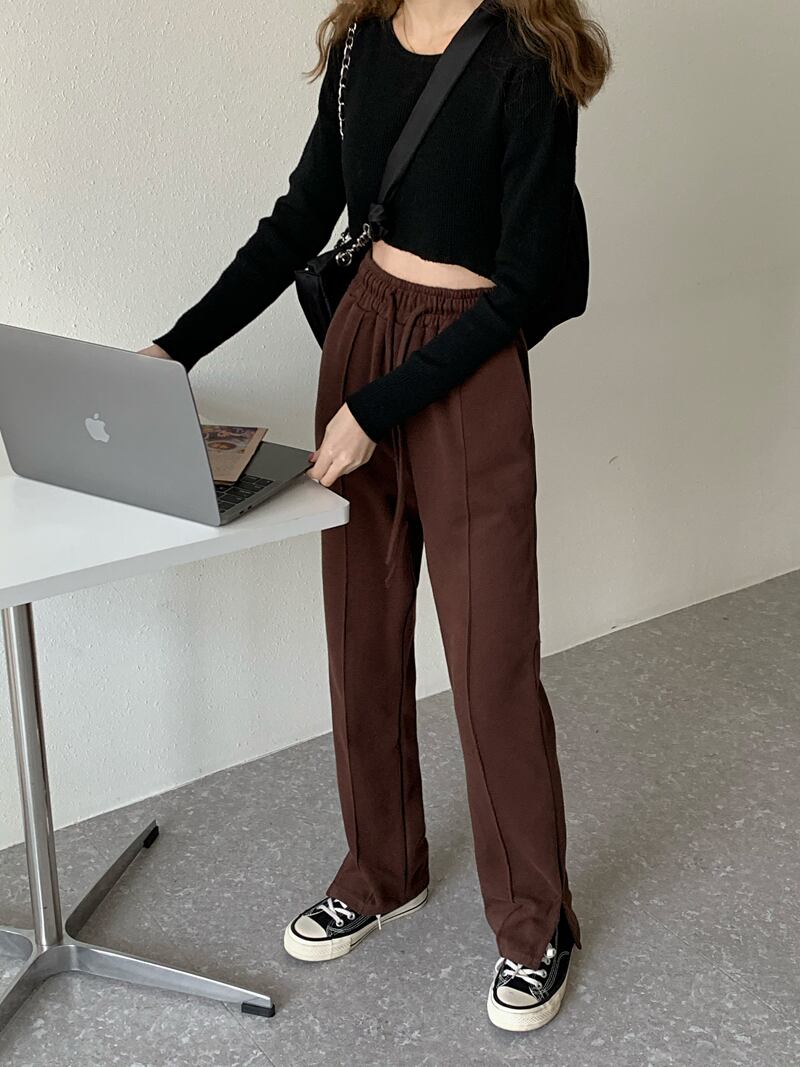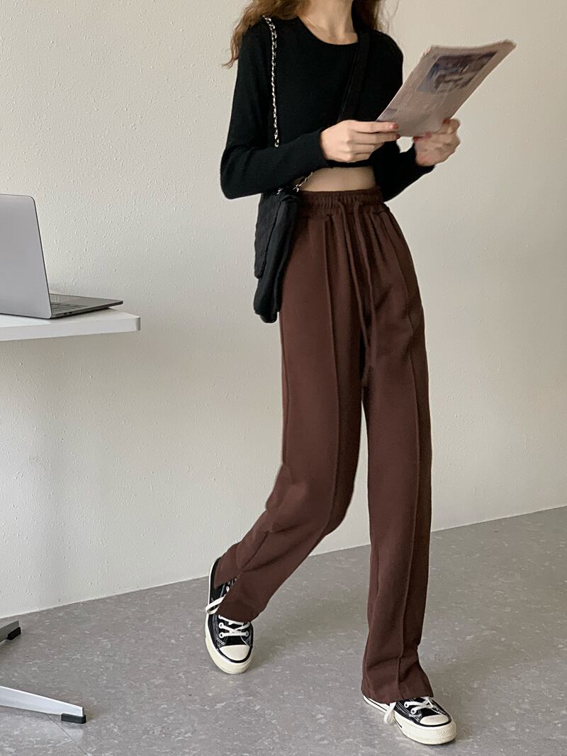 パンツ ハイウェストウェストスリムブラックスプリングルーズ 春物 YY-ファッション10479417768